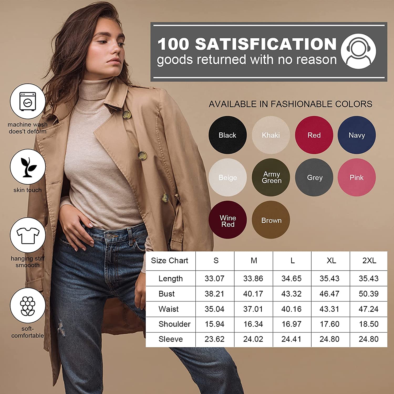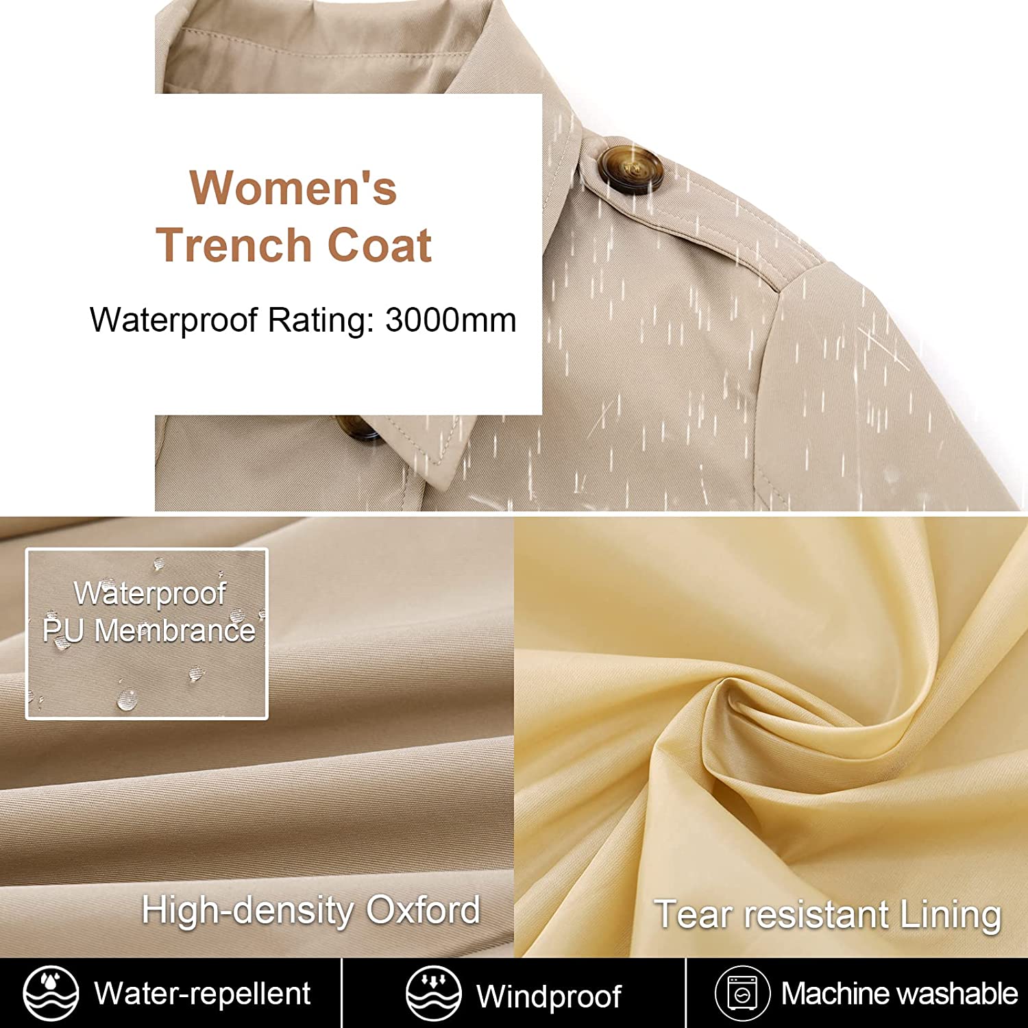 CREATMO US Women's Trench Coat Double-Breasted Classic Lapel Overcoat Belted Slim Outerwear Coat with Detachable Hood