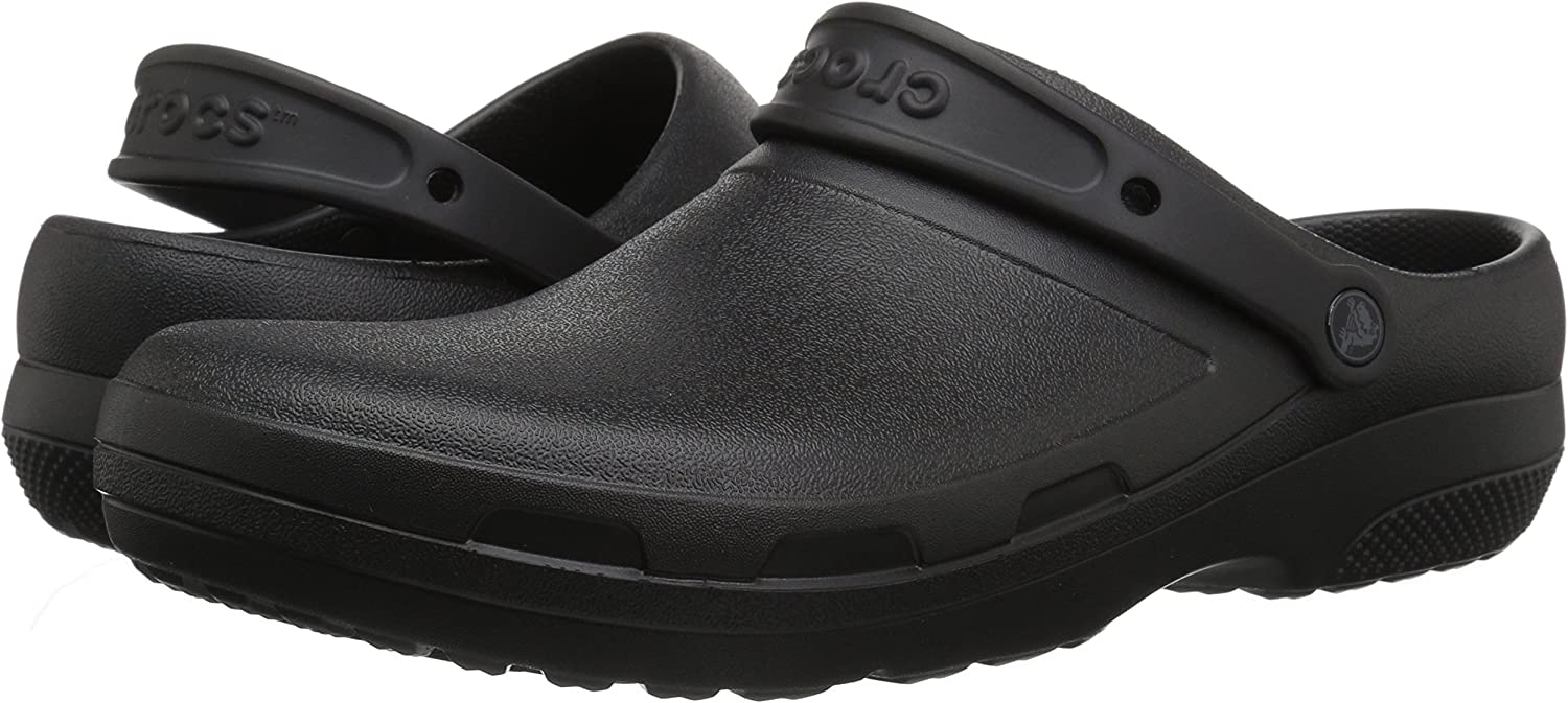 Do your shoes live up to your career specialty? Everything that makes Crocs so comfortable works overtime in these clogs from the Crocs At Work Collection. This style includes thicker construction at the toes and metatarsal areas, increased arch support, and nubbed Croslite foam footbeds for a massage-like experience with every step.