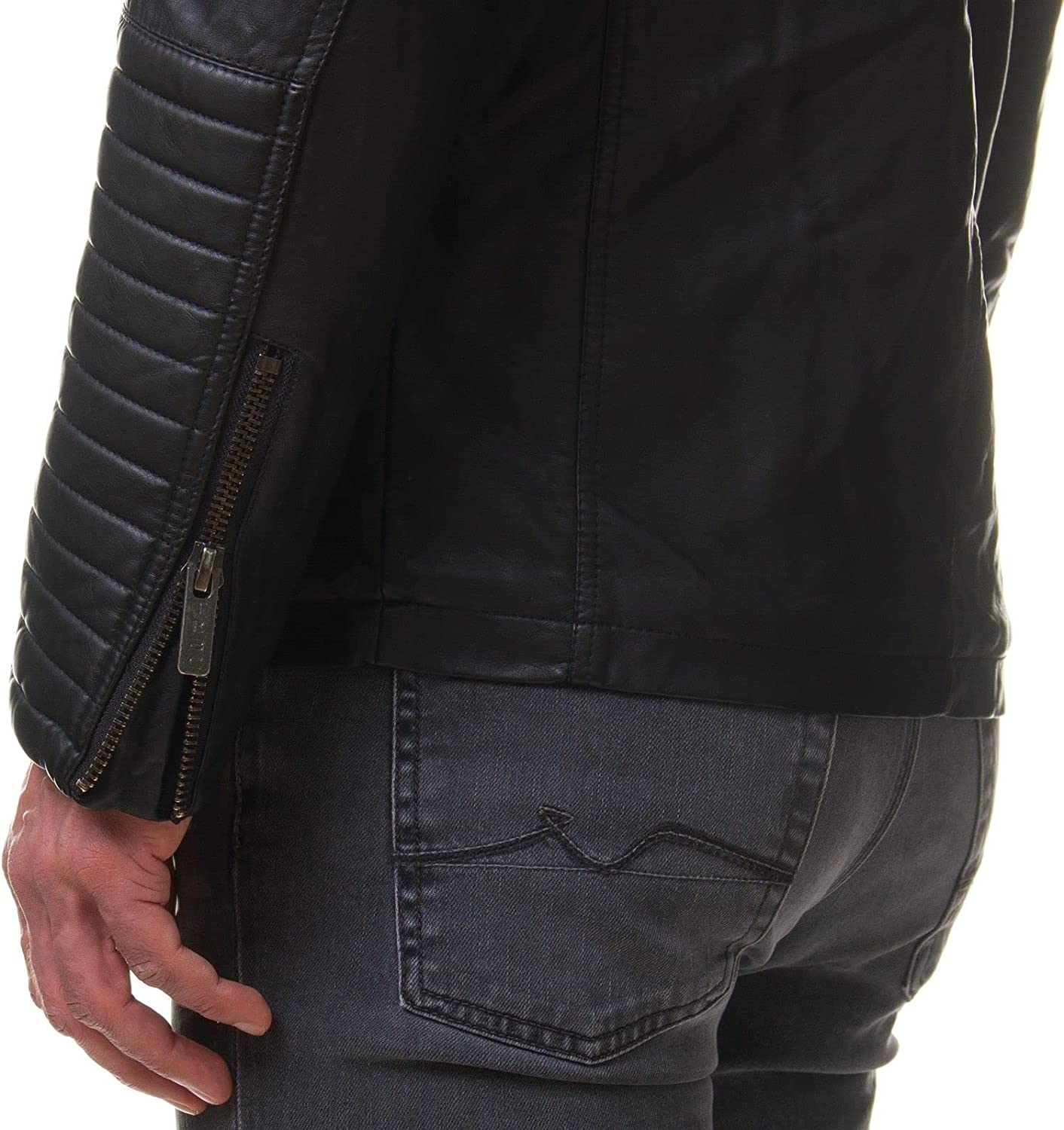 DECIMAL Men's Black REAL Lambskin Leather Biker Jacket VINTAGE GENUINE MOTORCYCLE JACKETS FOR MEN