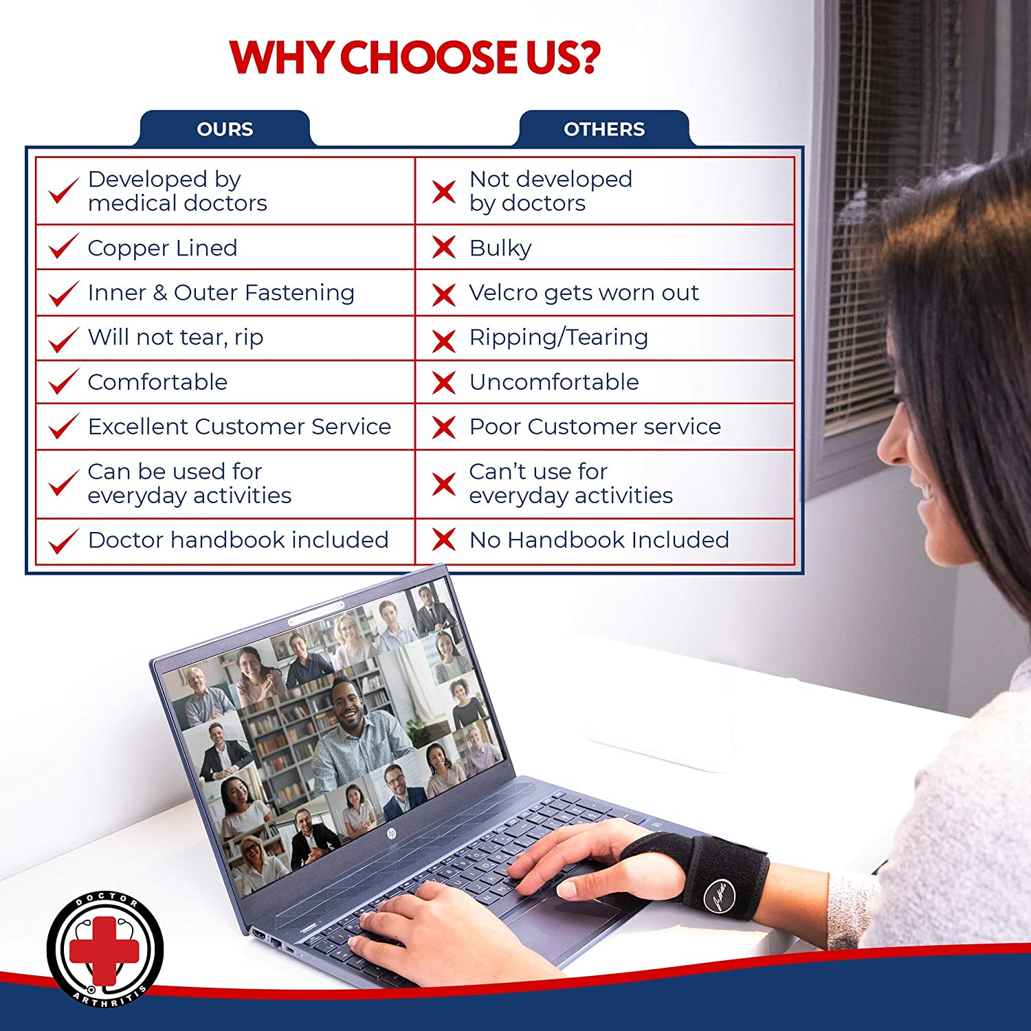 Doctor Developed Copper Wrist Brace/Carpal Tunnel/Wrist Support/Wrist Splint/Hand Brace -F.D.A. Medical Device & Doctor Handbook-Night Support for Women Men-Right & Left hands (Single)