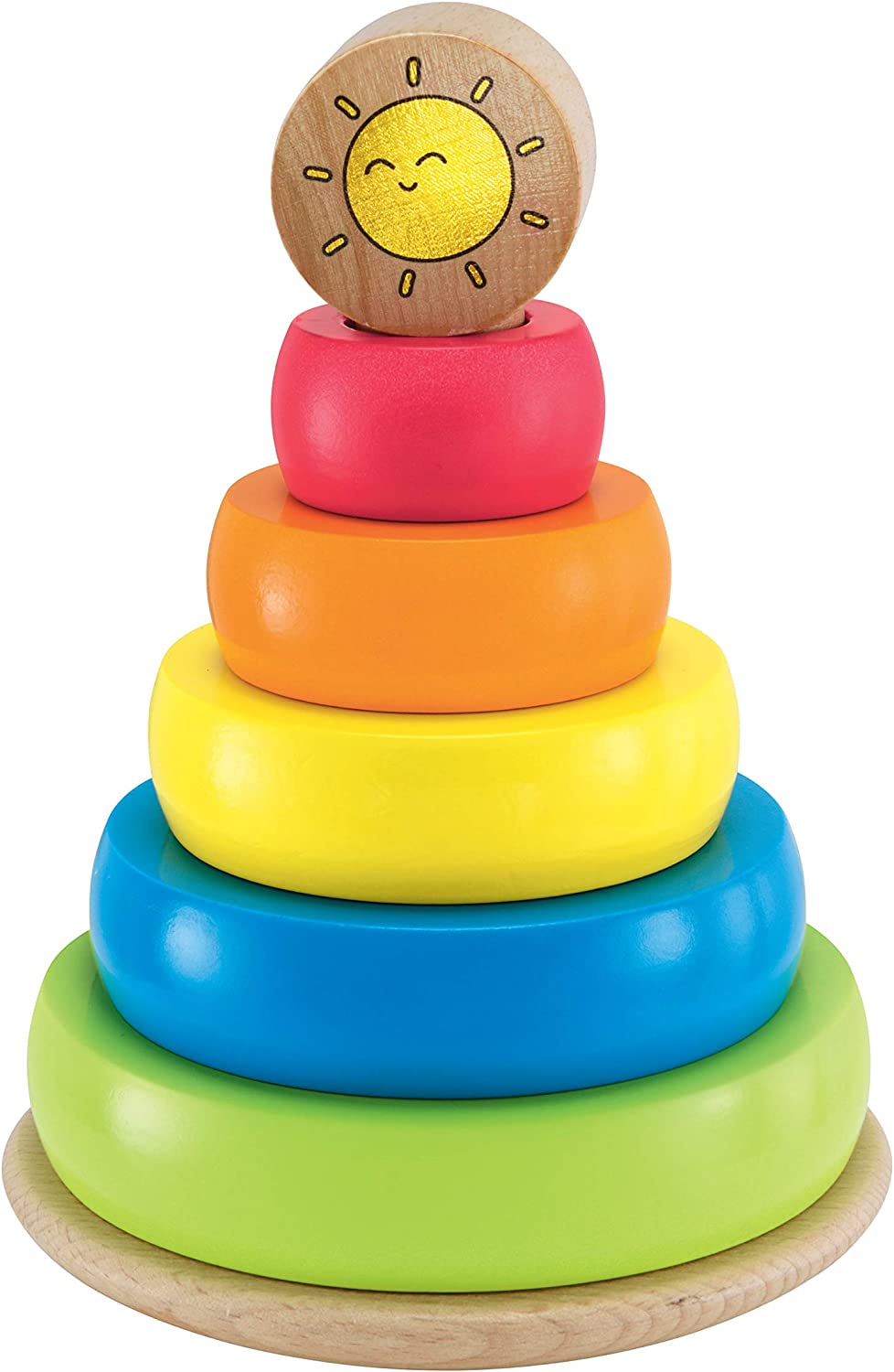 The traditional Wooden Stacking Ring set has been given a wobbly twist to make it even more fun! Stack the five brightly colored, chunky, wooden, stacking rings onto the base as it wobbles about then top it off with the sun topper. This classic wooden toy will encourage children to problem solve and enhances fine motor skills, including boosting reaction time and balance. Count the colorful rings with your child as they stack them on the base and place the little sun on top, then give the toy a push to watch it weeble and wobble around. Ages 18 - 36 months Early Learning Centre is based in the United Kingdom and has been designing and developing high quality, innovative toys since we were established in 1974. We are proud of our heritage and, as a leading specialist of children’s development, we promise to always strive to be that little bit better, and that little bit different.