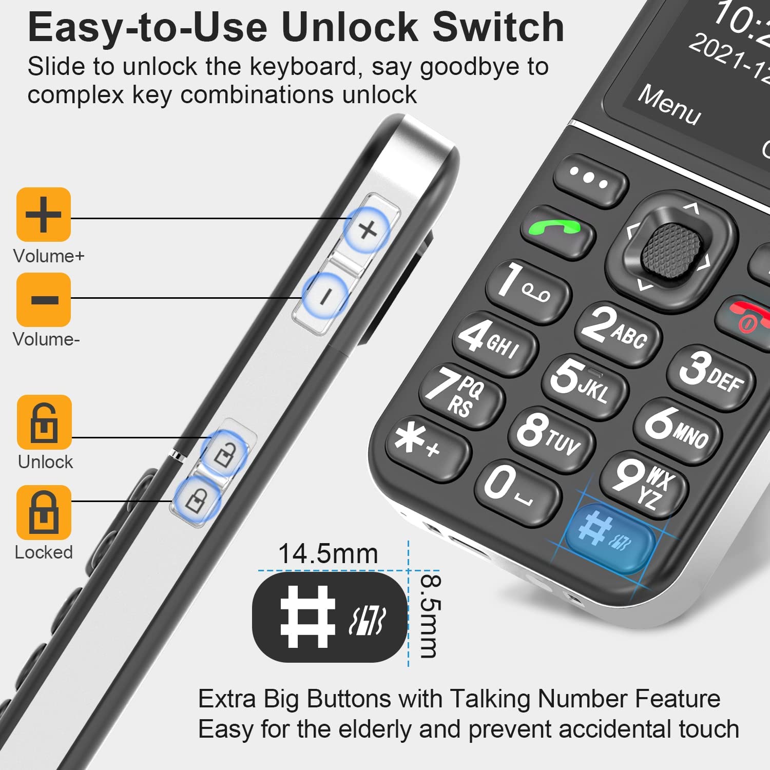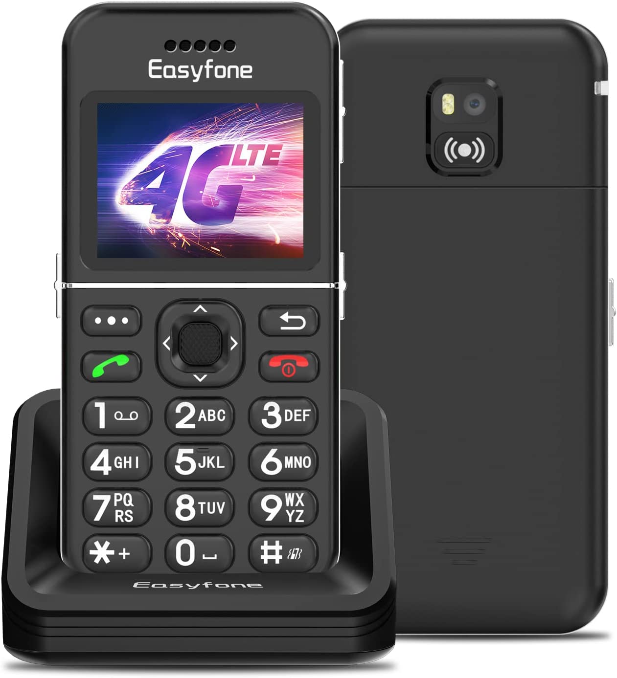 Easyfone T100 4G LTE Unlocked Big Button Senior Cell Phone, SOS Button with GPS, Hearing Aid Compatible, 1500mAh Battery with Easy to Use Charging Cradle, FCC Certified.