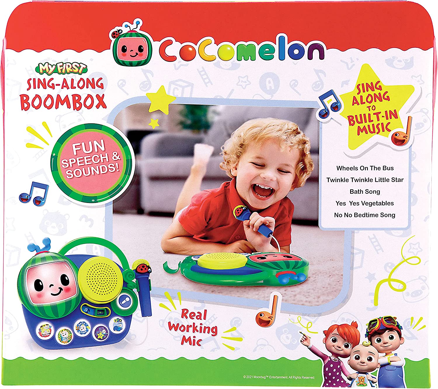 eKids Cocomelon Toy Singalong Boombox with Microphone for Toddlers, Built-in Music and Flashing Lights, for Fans of Cocomelon Toys and Gifts