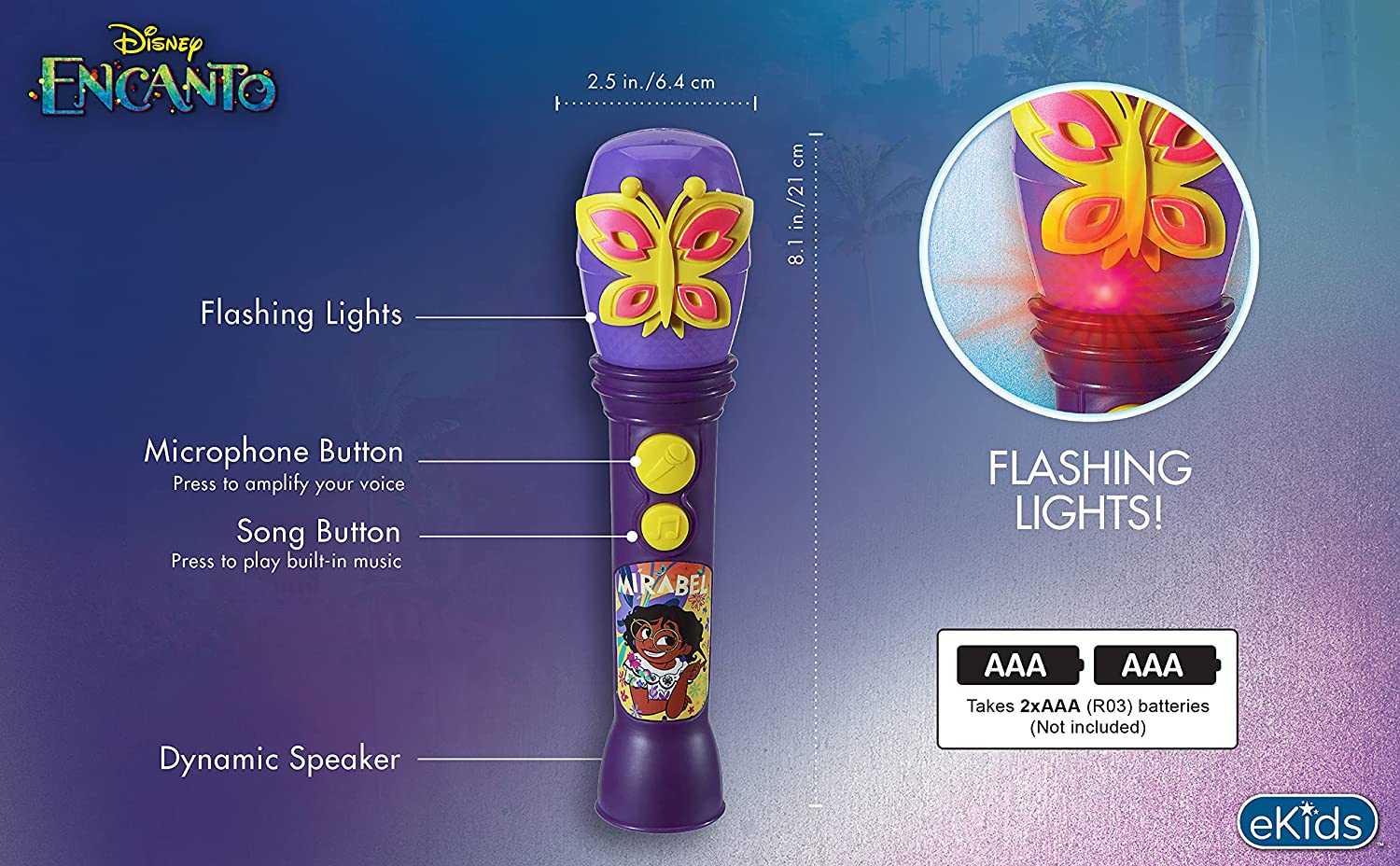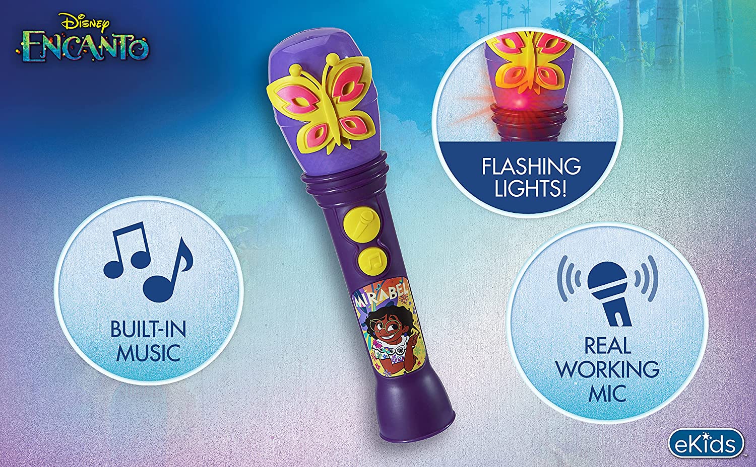 eKids Disney Encanto Toy Microphone for Kids, Built-in Music and Flashing Lights for Fans of Disney Toys for Girls