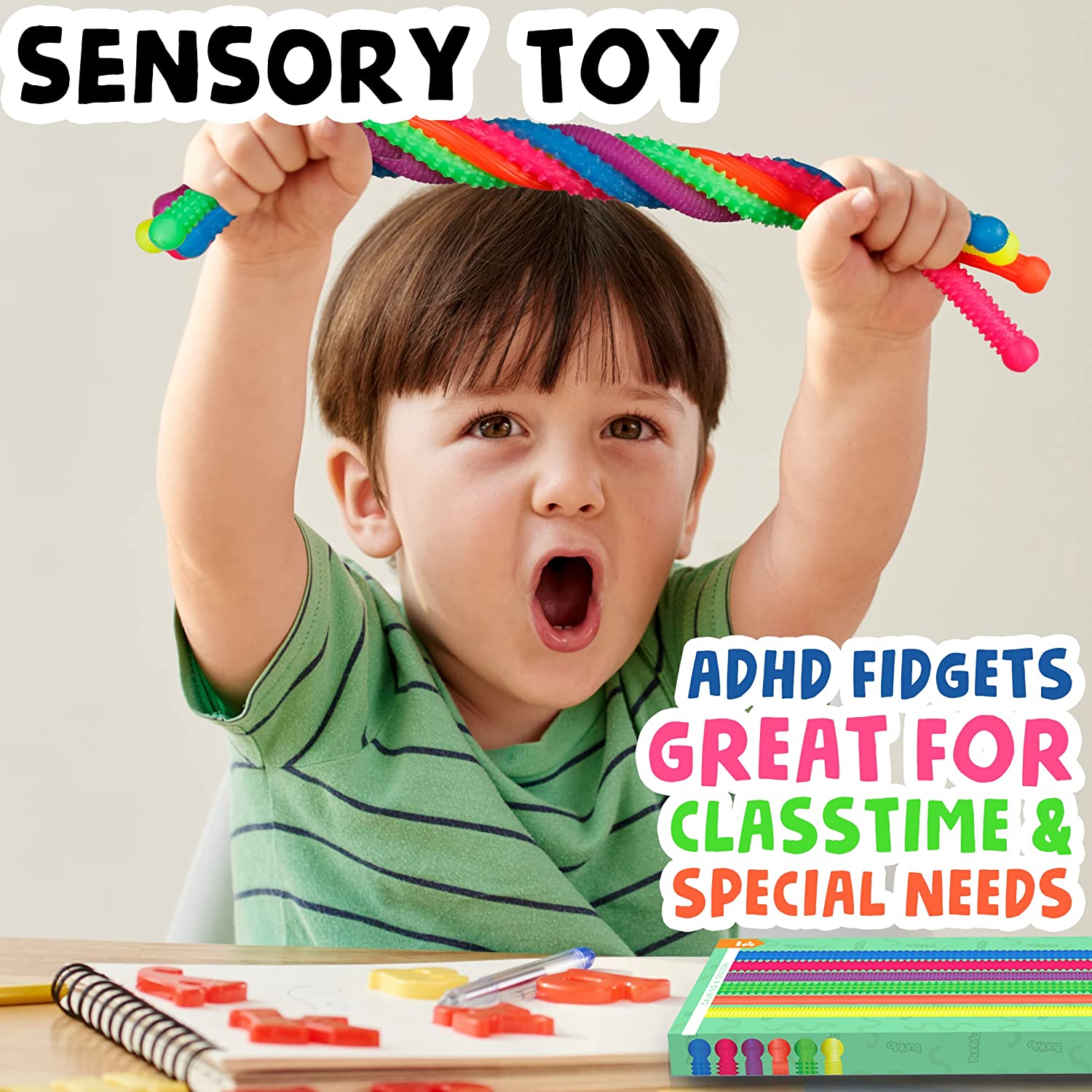Fidget Toys and Textured Sensory Toys by BUNMO - Textured Stretchy Strings Fidget Toy. Bumpy Fidget Toys for Adults and Kids Make Anxiety Toys, Autism Sensory Toys