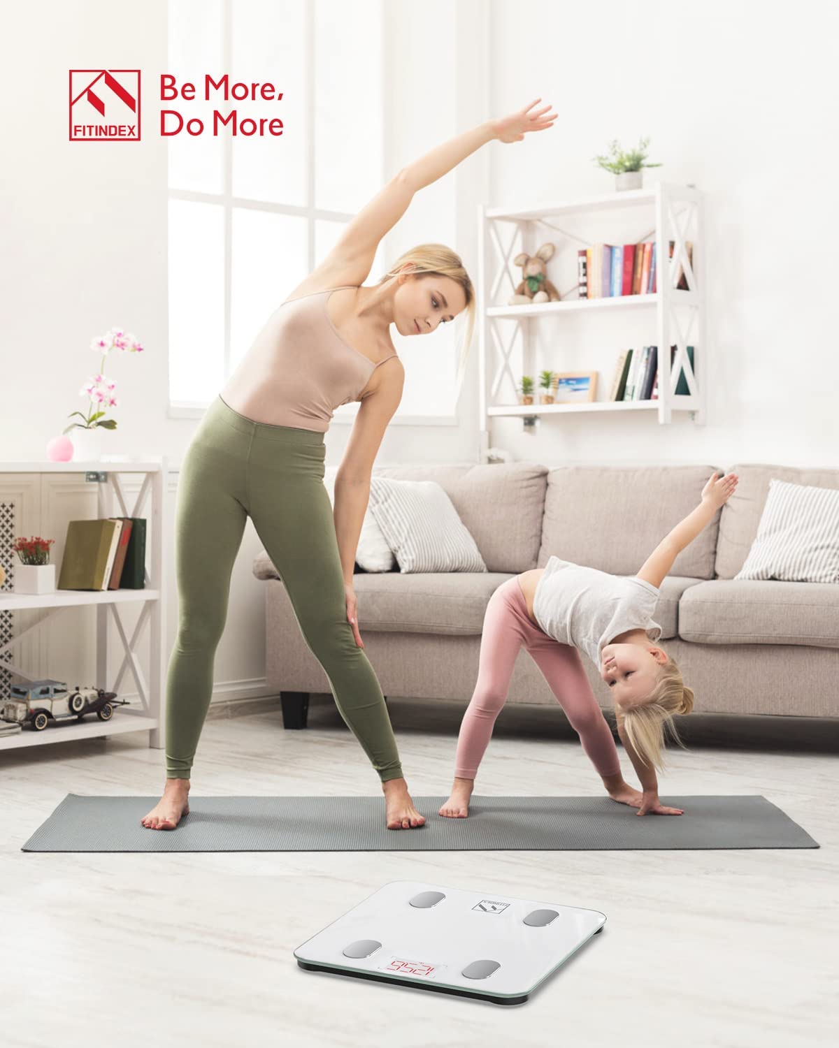 FITINDEX Bluetooth Body Fat Scale, Smart Wireless BMI Bathroom Weight Scale Body Composition Monitor Health Analyzer with Smartphone App for Body Weight, Fat, Water, BMI, BMR, Muscle Mass - White