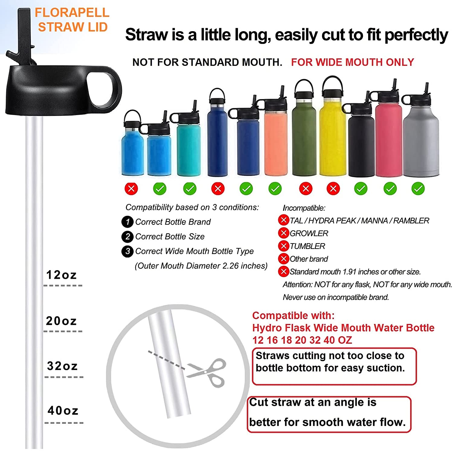FLORAPELL straw lid for hydro flask wide mouth water bottles