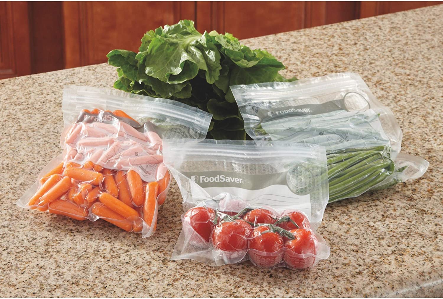 FoodSaver 1-Quart Vacuum Zipper Bags are reusable and resealable bags and perfect for storing frequently used food items like snacks, deli meats, cheeses, and more. Constructed of the same BPA-free multimaterial as FoodSaver heat-seal bags, the bags also protect their contents from freezer burn and spoilage up to 5 times longer than nonvacuum storage methods.