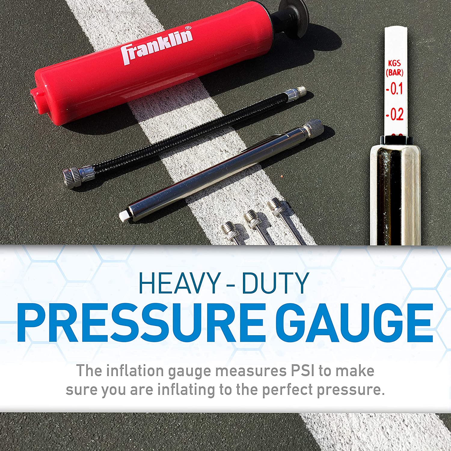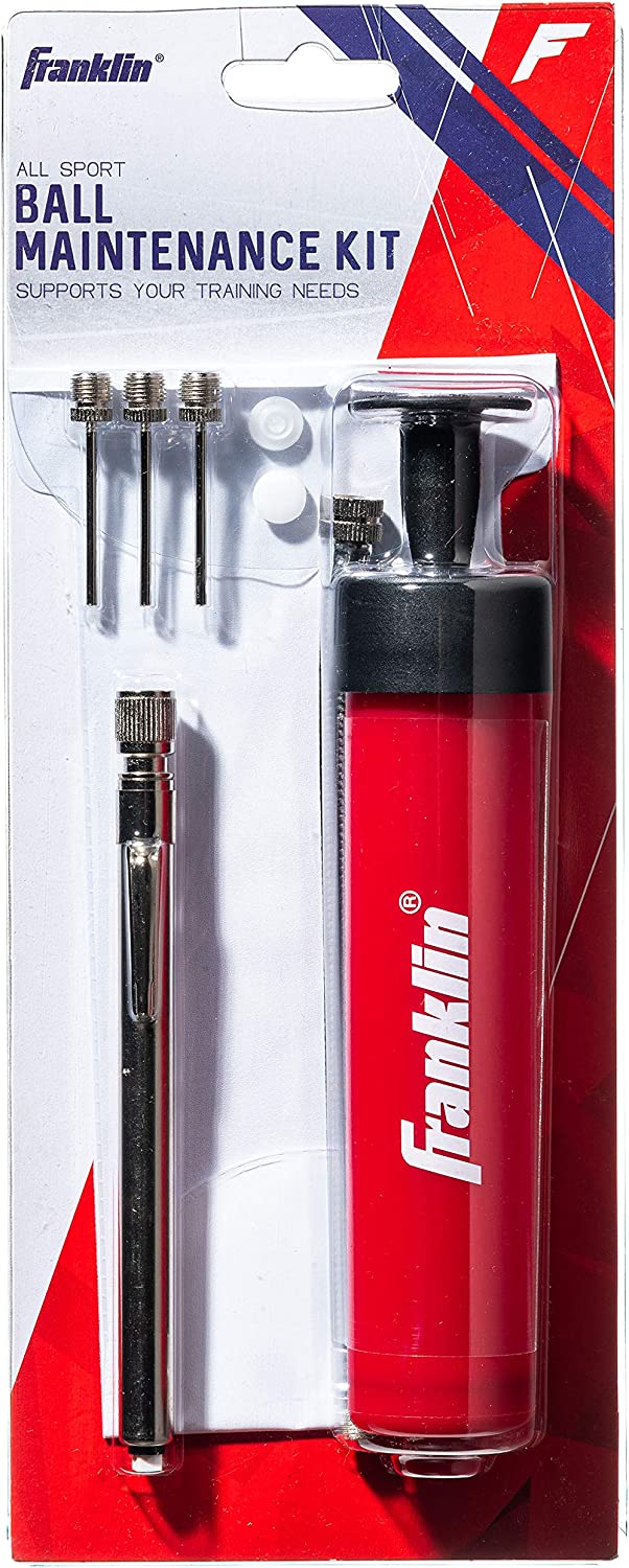 Keep your sports balls inflated and ready to play with Franklin Sports' Ball Pump Kit! Nothing is worse than a flat basketball or soccer ball when you're ready to get the game started. But with this complete hand pump kit, you'll have everything you need to keep your sports balls inflated for optimal play. This set comes complete with (1) 7.5" hand pump, (3) inflation needles (1) flexible hose, (1) air pressure gauge, and (1) carry bag to make it easy to bring on the go. Don't let your game fall flat. Bring home one of Franklin Sports' Ball Pump Kits today and bring the bounce back!