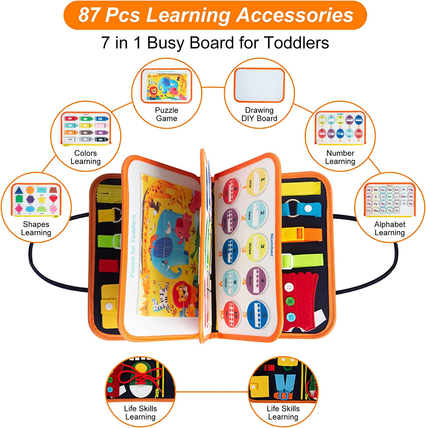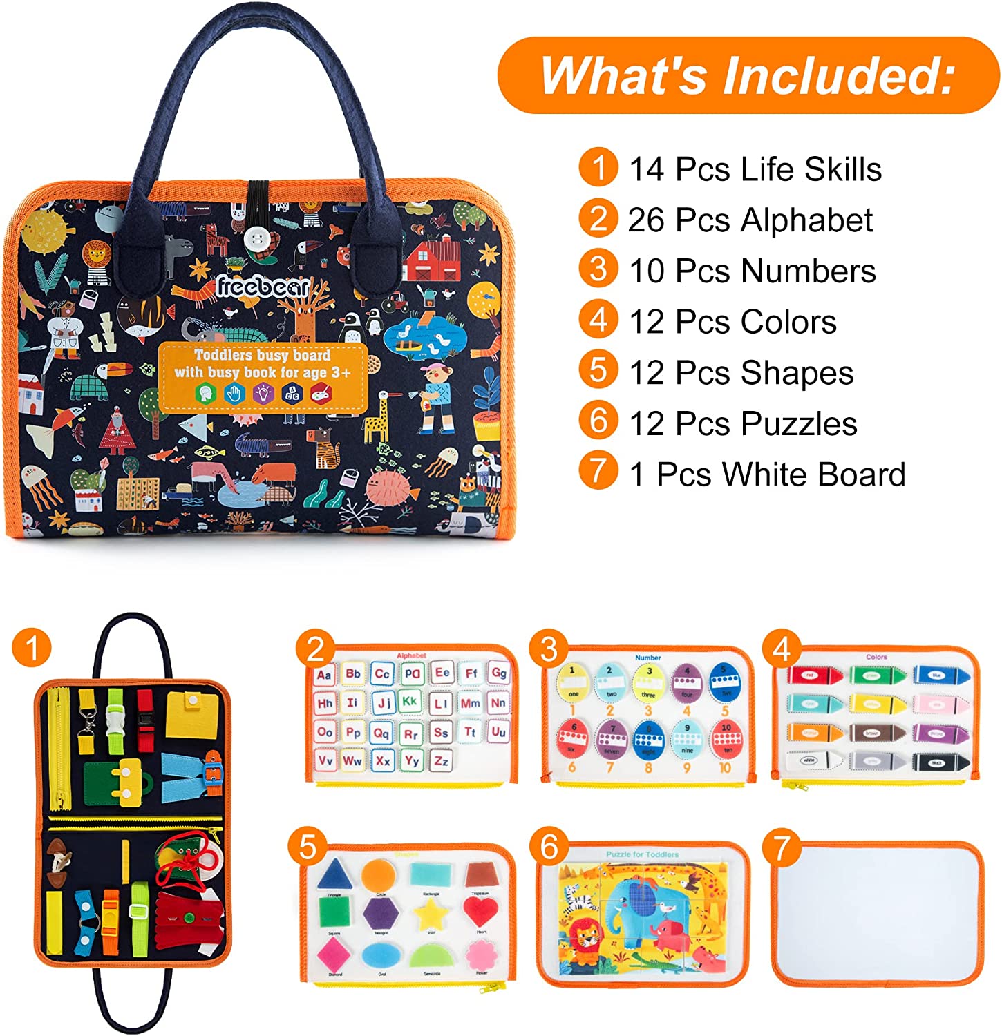 Freebear Busy Board, Toddler Travel Toys, Quiet Book with DIY Page, Sensory Toys for Toddlers 1 2 3, Montessori Toys for Toddler Activities Board, Educational Toys for 1 Year Old Girls Boys Gift