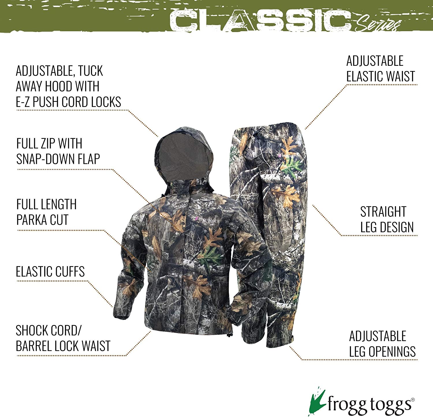 FROGG TOGGS Women's Standard Classic All-Purpose Waterproof Breathable Rain Suit, Realtree Edge, Medium