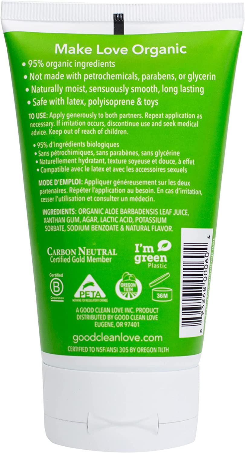 Good Clean Love Almost Naked Personal Lubricant, Organic Water-Based Lube with Aloe Vera, Safe for Sex Toys & Condoms, Sexual Wellness Gel for Men & Women, 4 Oz
