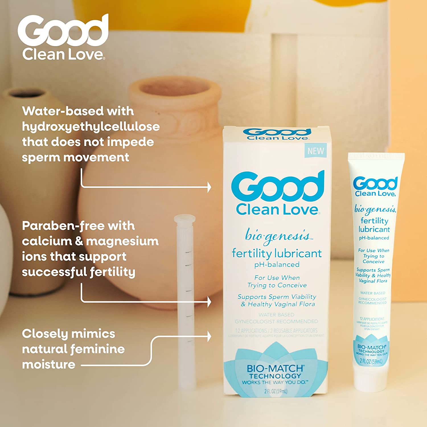 Good Clean Love Biogenesis Fertility-Friendly Lubricant, Water-Based & Paraben-Free Lube, for Women & Couples Trying to Conceive, Safe for Sex Toys, 2 Oz
