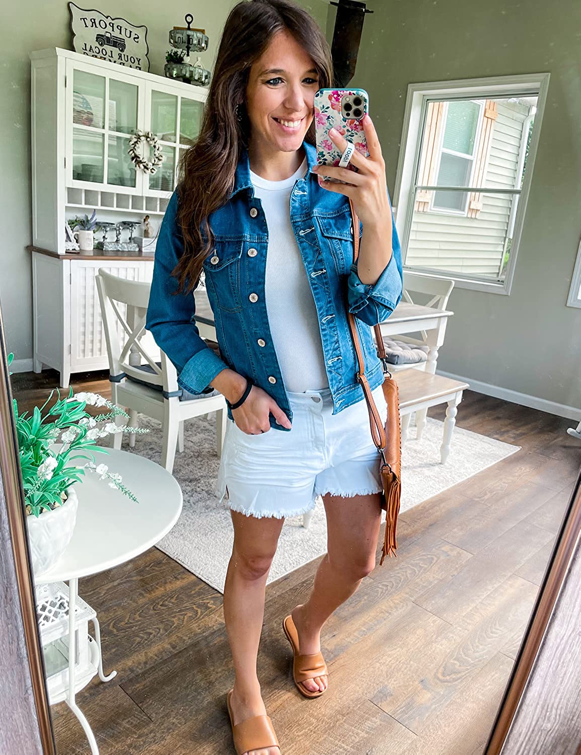 GRAPENT Women's Basic Button Down Long Sleeve Stretchy Jean Trucker Denim Jacket