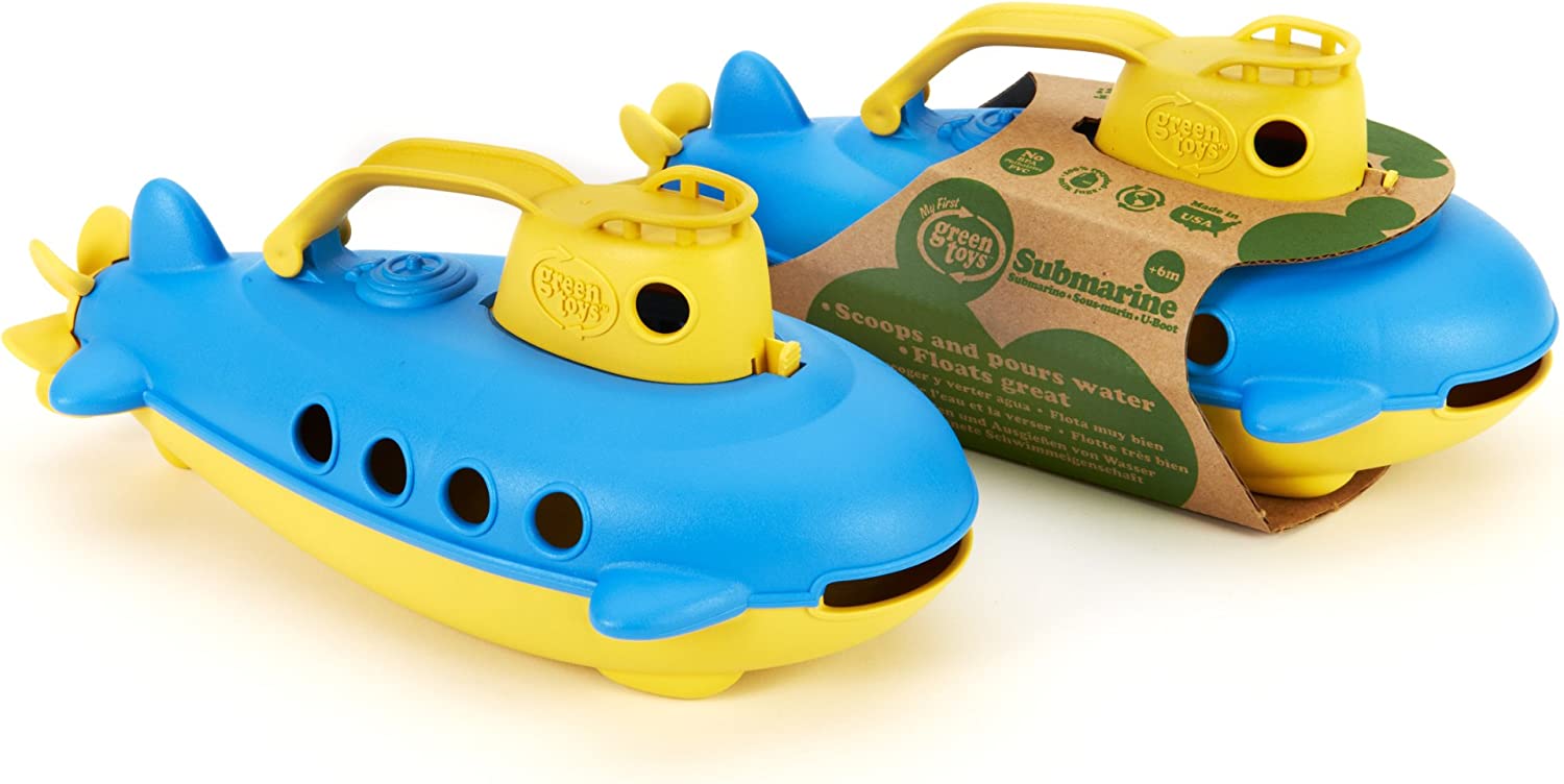 Green Toys Submarine in Yellow & blue - BPA Free, Phthalate Free, Bath Toy with Spinning Rear Propeller. Safe Toys for Toddlers, Babies