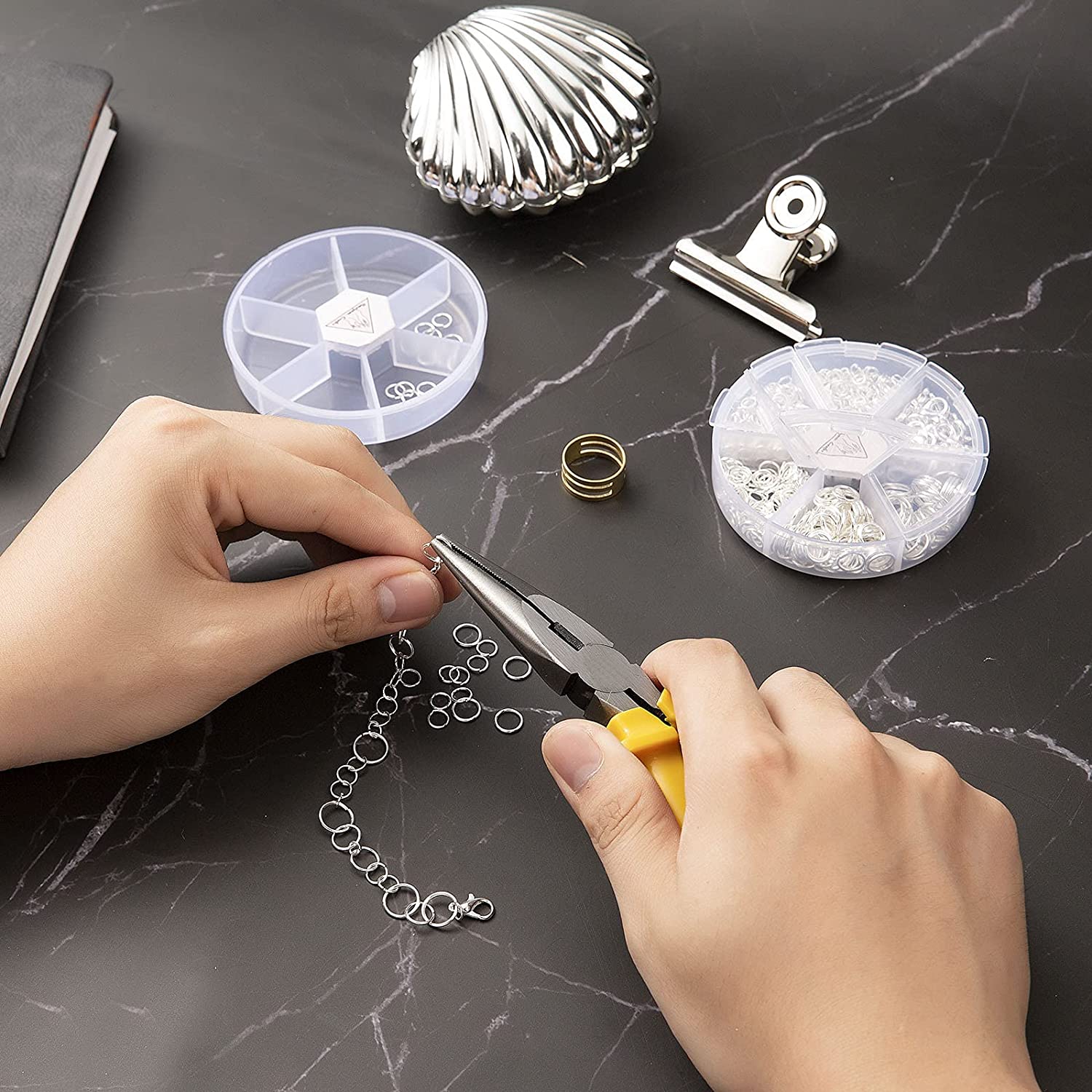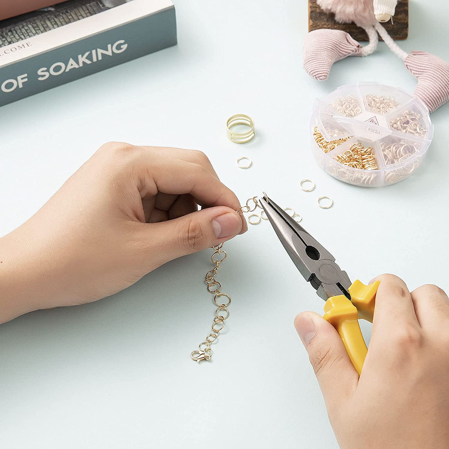 Handyman Crafts Jump Rings Kit With1000PCS Open Jump Rings 40PCS 12mm Lobster Clasps and Jump Rings Opener for Jewelry Making Keychains and Necklace Repair (Gold)