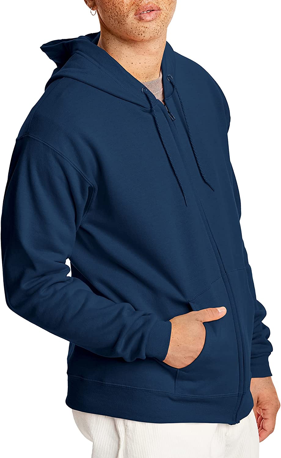 The Hanes Comfort Blend Eco-Smart full-zip hooded jacket provides medium weight fleece comfort all year around. Feel better in this sweatshirt because Hanes keeps plastic bottles of landfills by using recycled polyester.