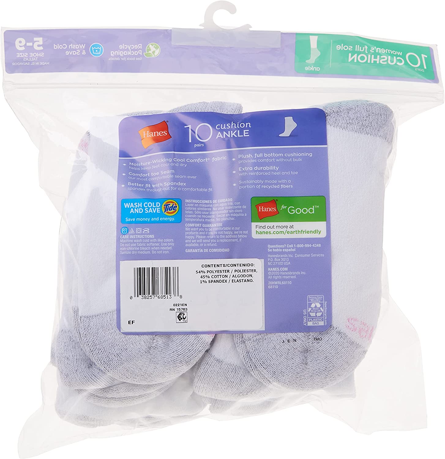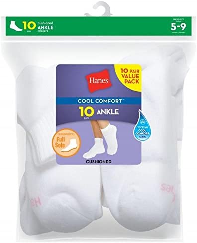 Hanes Women's Cool Comfort Socks offer the comfort, softness, and value you expect from Hanes. Perfect for everyday wear, these socks are a favorite basic. They have a reinforced heel and toe for durability and are built to last! A cushioned foot bottom provides all day comfort, and spandex throughout means a great all-day fit. Wicking Cool Comfort fabric helps keep feet cool and dry.