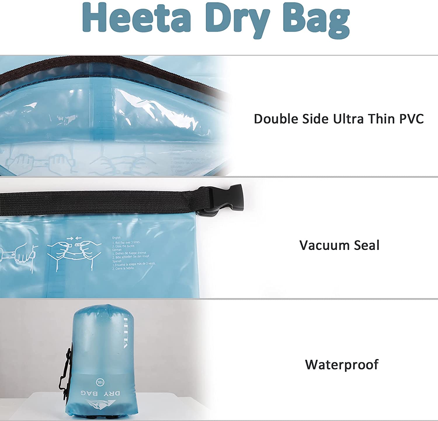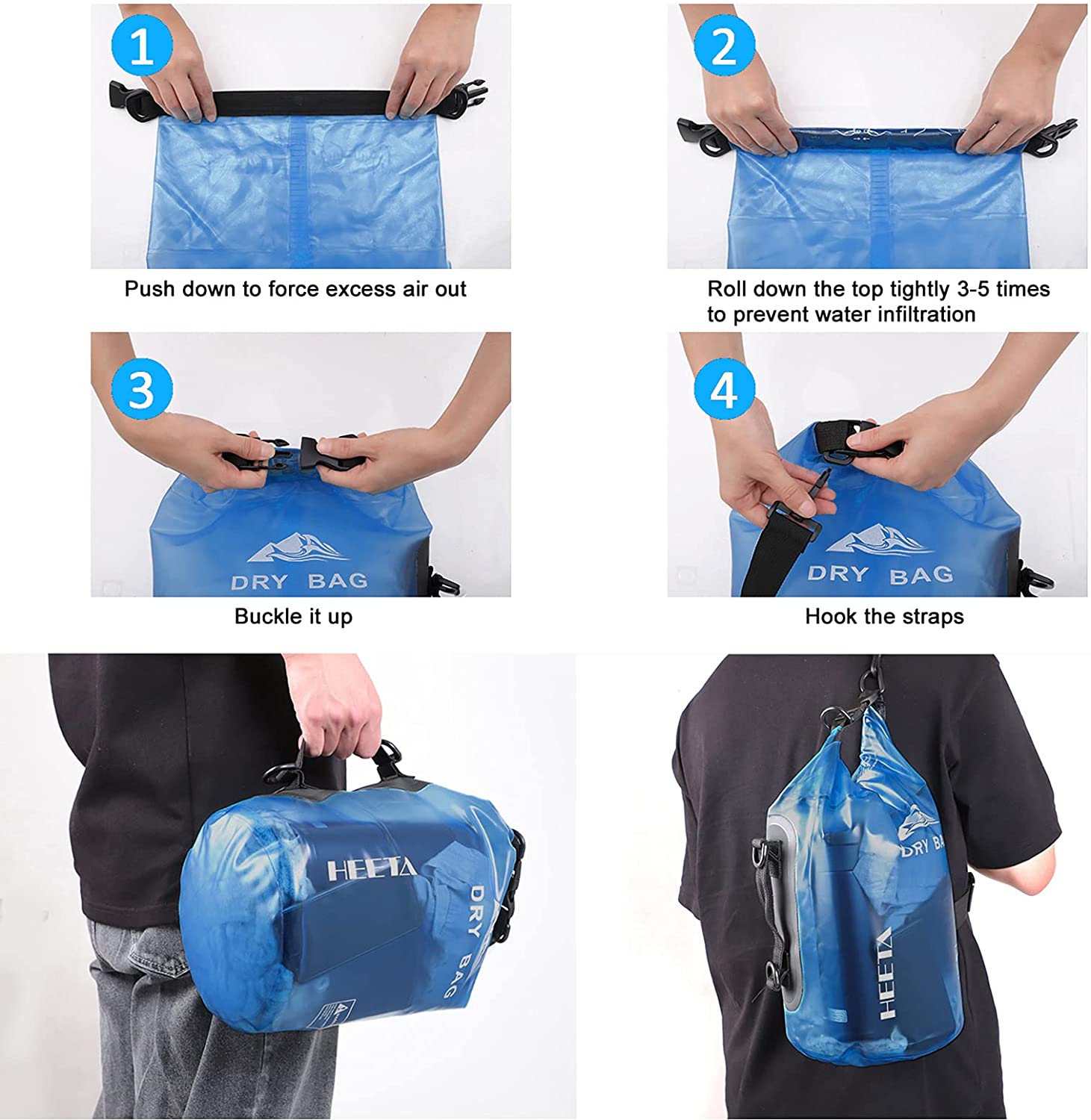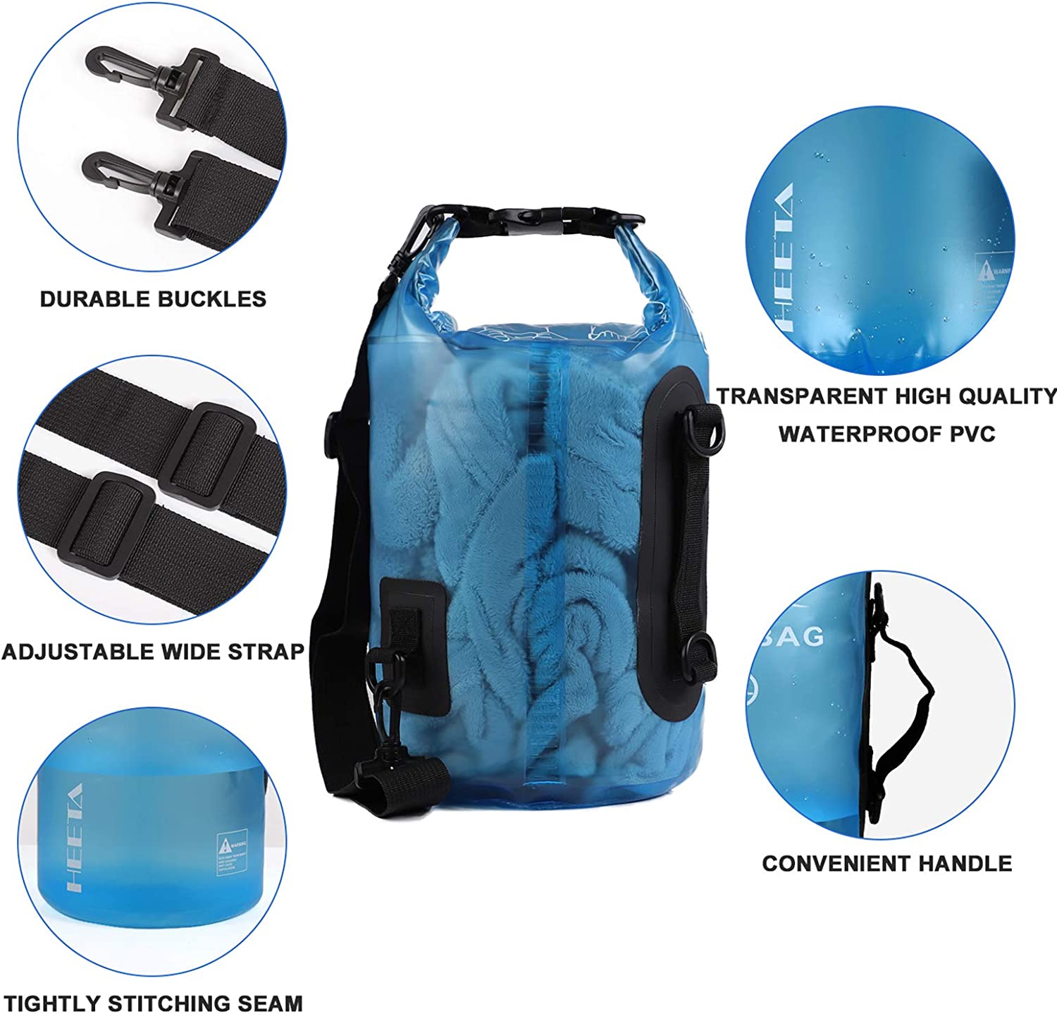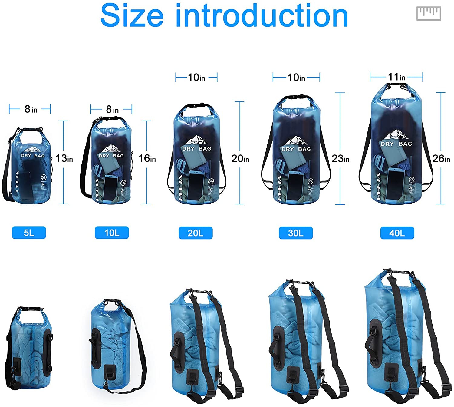 HEETA Waterproof Dry Bag for Women Men, 5L/10L/20L/30L/40L Roll Top Lightweight Dry Storage Bag Backpack with Phone Case for Travel, Swimming, Boating, Kayaking, Camping and Beach