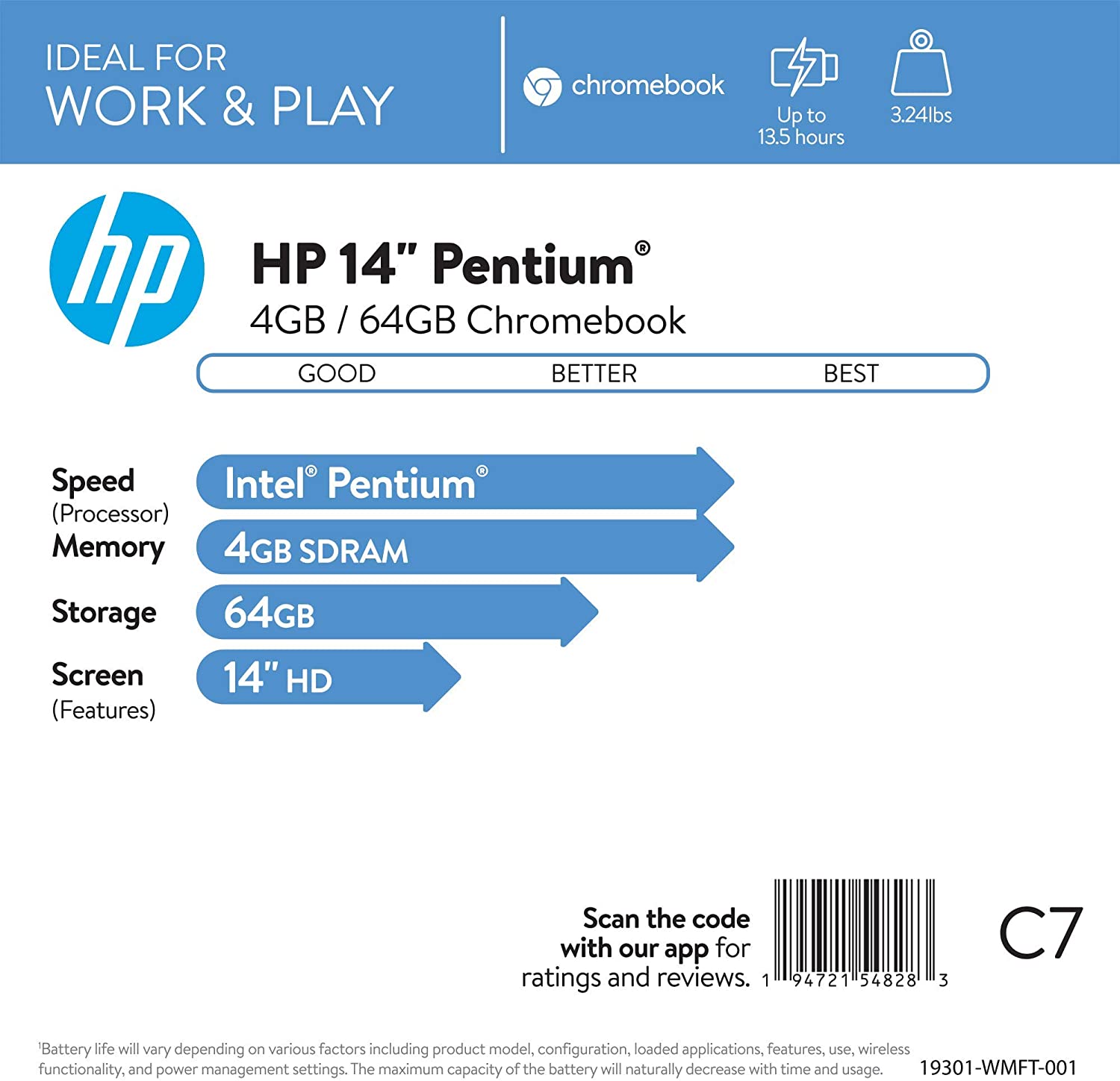 HP 2020 Flagship 14 Chromebook Laptop Computer 14-inch HD SVA Anti-Glare Display Intel Celeron N5000 Processor 4GB DDR4 64GB eMMC WiFi Webcam Chrome OS (Renewed)