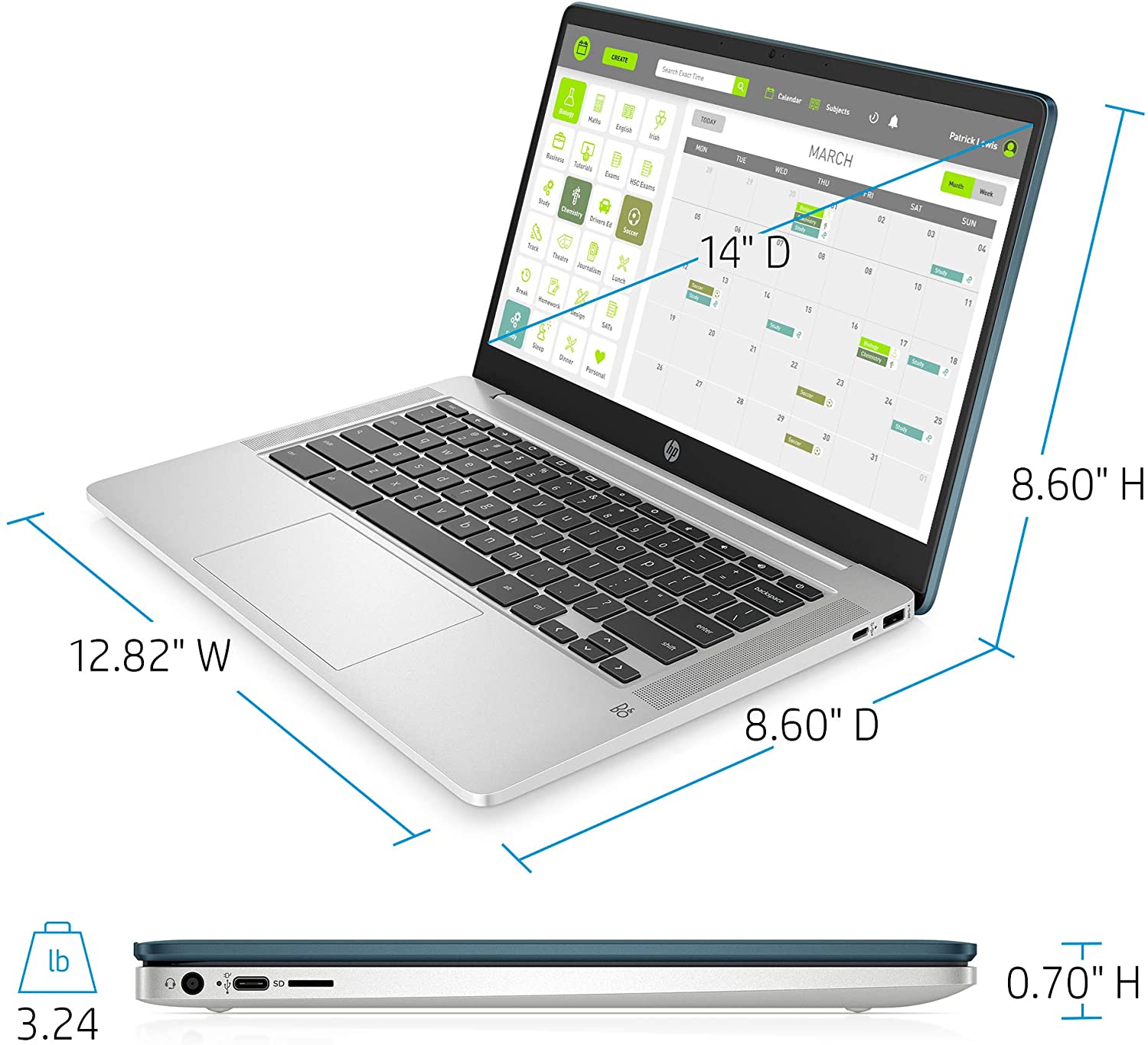 HP Chromebook 14-inch HD Laptop, Intel Celeron N4000, 4 GB RAM, 32 GB eMMC, Chrome (14a-na0070nr, Forest Teal) (Renewed)