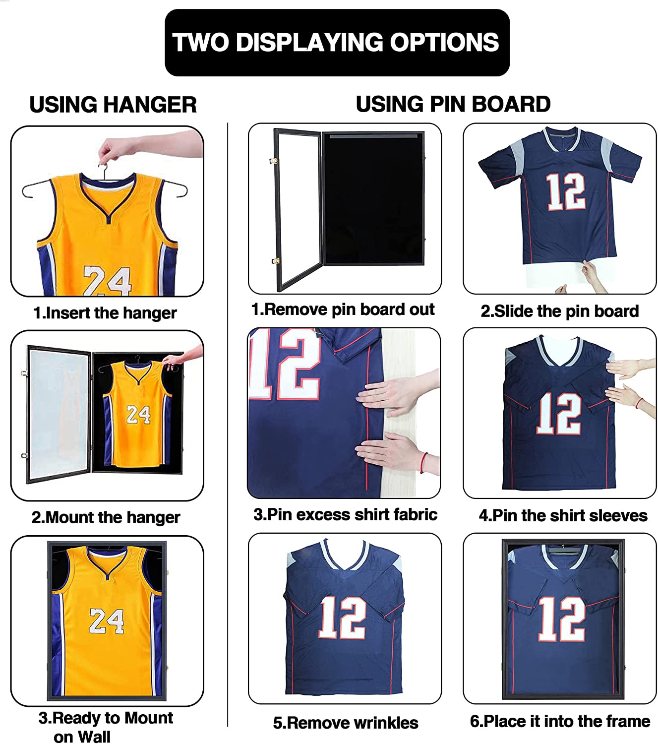 Jersey Display Frame Case, Large Lockable Shadow Box Sports Jersey Frame with 98% UV Protection Acrylic and 2 Hanger for Baseball Basketball Football Soccer Hockey Shirt,Uniform, Graduates Black
