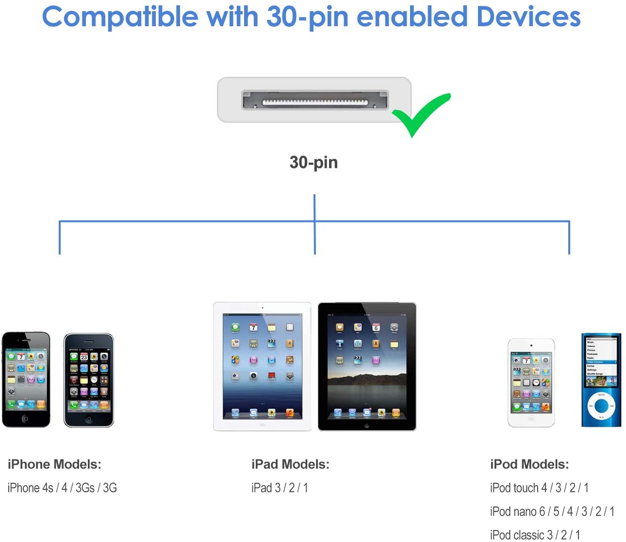 JETech USB Sync and Charging Cable Compatible iPhone 4/4s, iPhone 3G/3GS, iPad 1/2/3, iPod, 3.3 Feet (White)