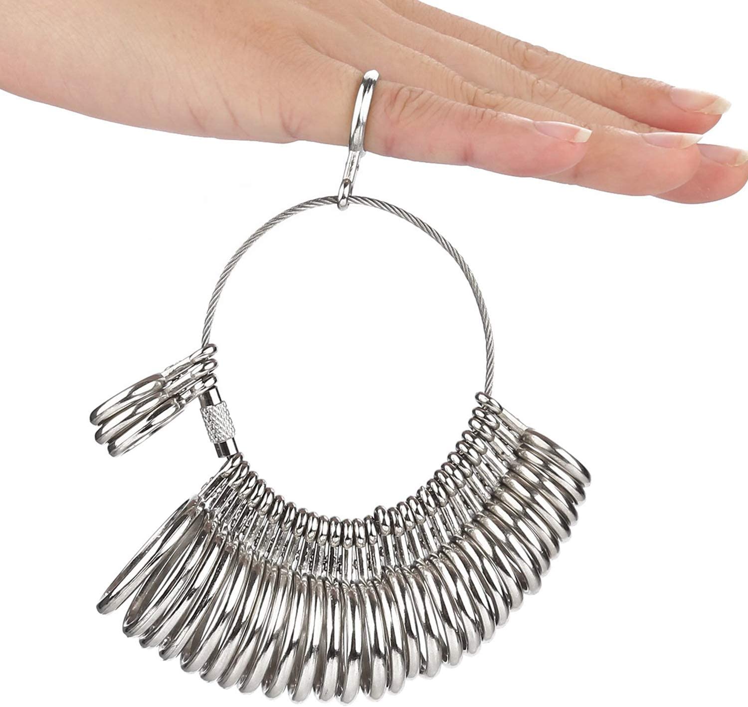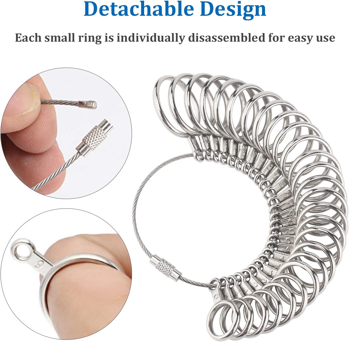 Jewelry Sizers Stainless Iron Ring Sizer Finger Ring Sizing Measuring Tool Ring Sizer Gauge Set Circle Models with Plastic Ring Sizer Belt