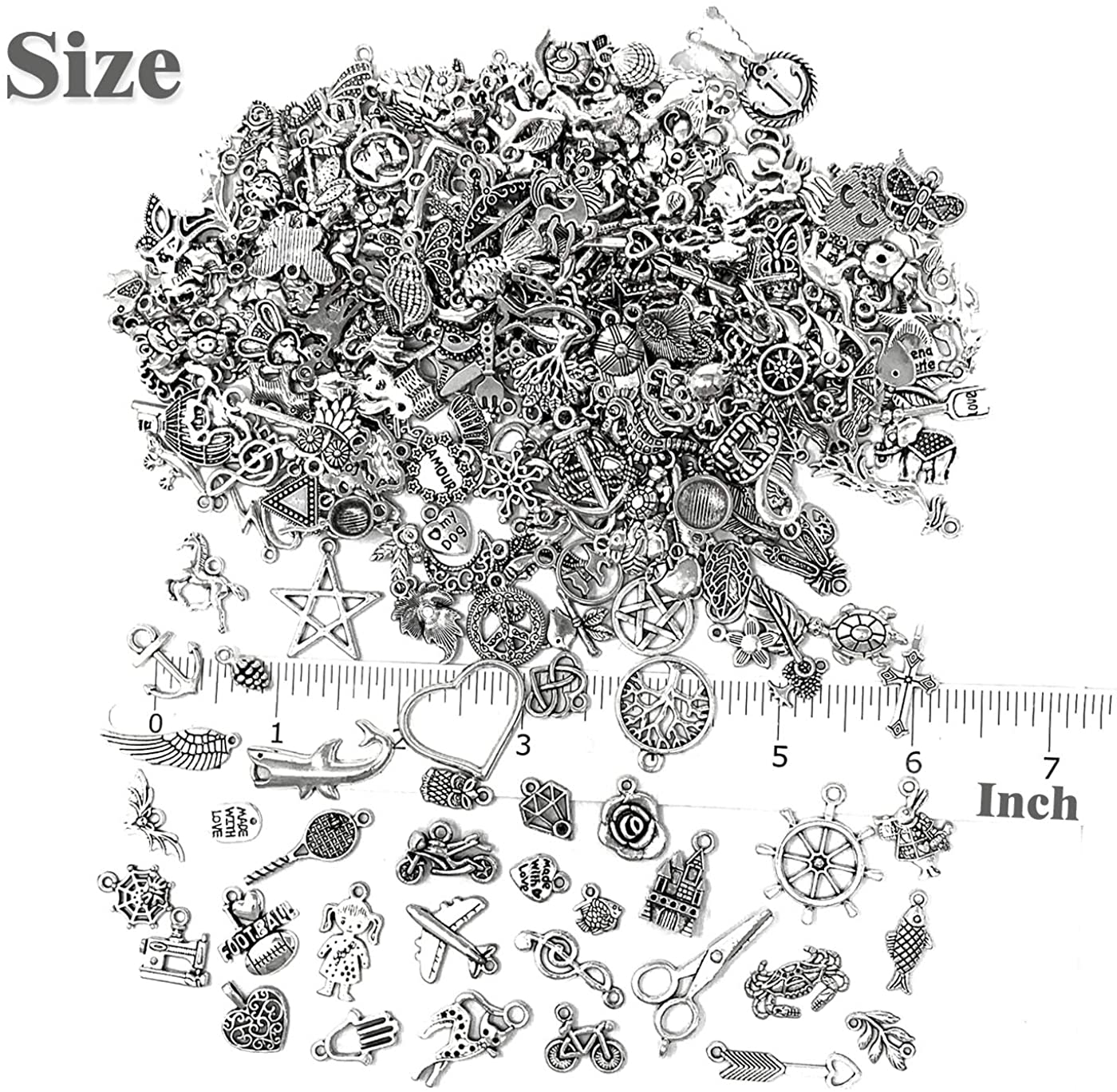 JIALEEY Charms for Jewelry Making 300 Pieces Wholesale Bulk Lots, Mixed Smooth Tibetan Silver Charms Pendants for DIY Necklace Bracelet Jewelry Making Crafting