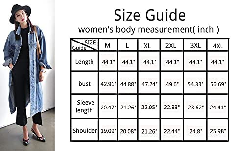 Jofemuho Womens Classic Long Jean Jacket Plus Size Loose Long Sleeve Button Down Denim Jacket Trench Coat
