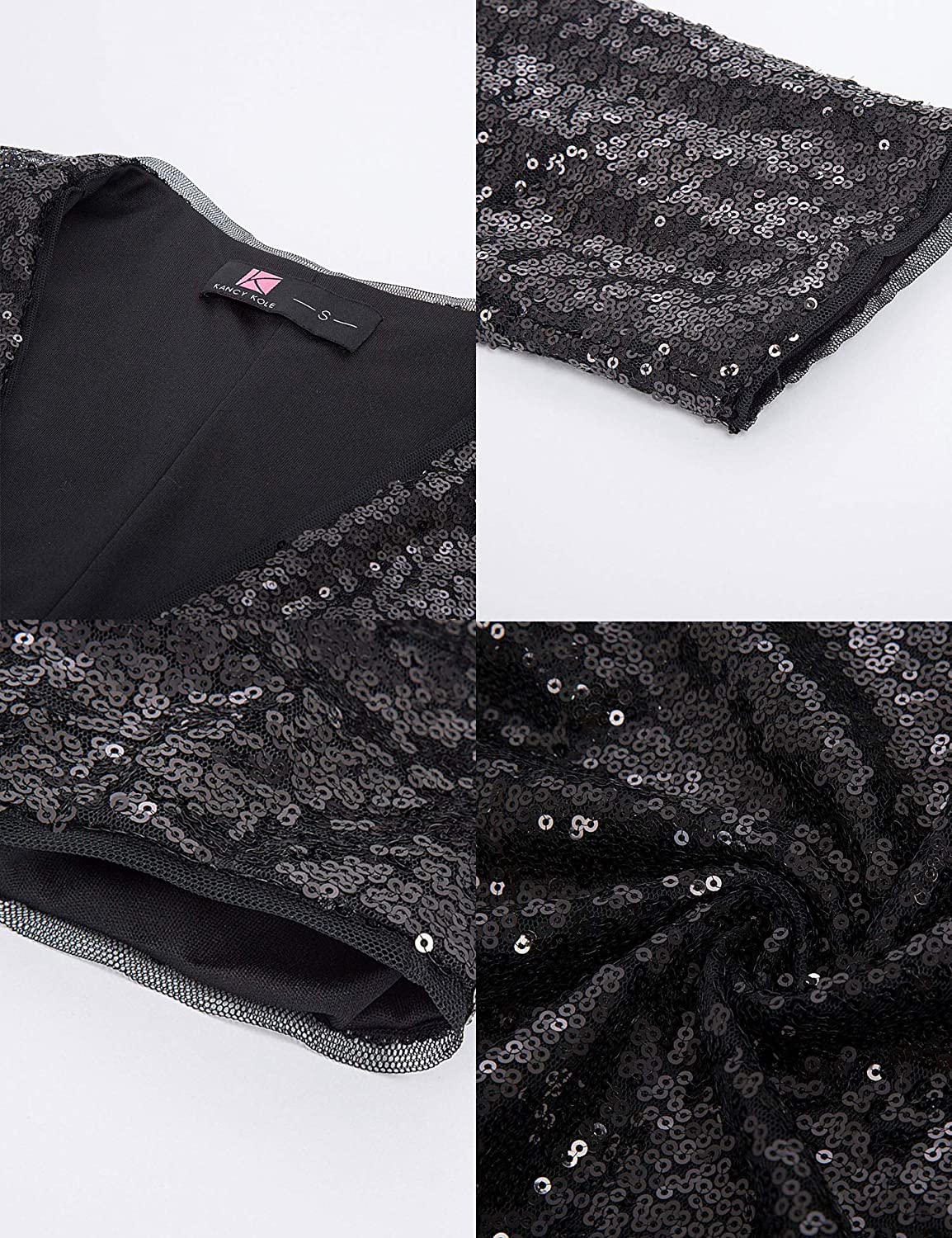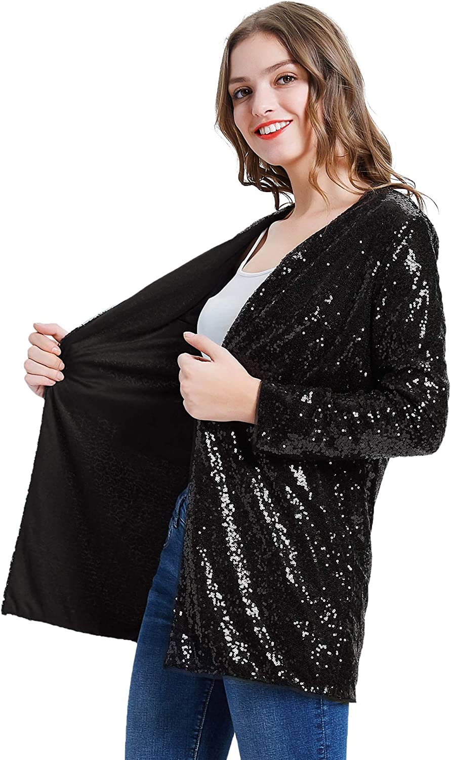 KANCY KOLE Women's Sequin Jacket Open Front Blazer Casual Long Sleeve Cardigan Coat S-XXL
