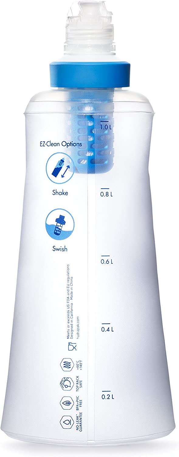 With the Katadyn befree water filtration system, you no longer have to worry about where your next drink will come from. Just fill up the flask and let the ez-clean membrane do the work. Gently squeeze the flask for instant refreshment. Maintain the ez-clean membrane quickly and easily for longer life and more enjoyment. Simply fill the flask with water, attach the cover and Shake free the debris. Or, remove the Filter from the flask and swish in any lake, River or stream. And when you're ready to hit the road, the collapsible flask packs small to fit into tight spaces. Just smash, stash and go!.Hydrapak soft flask is longer lasting, rugged, high-tech, flexible, bpa-freeno backflushing and no clumsy tools. Simple Shake or swish the ez-clean membrane in the water and be on your way0.1 micron hollow fiber technologyfor solo usesuitable for cloudy waterlightweight and portableflow rate: 2 liter per minutetested to 1000 L, depending on water qualitywt. 2.3 oz (63g)size: 10.0 x 4.25 x 3.0 in (25.4 x 10.8 x 7.7 cm).
