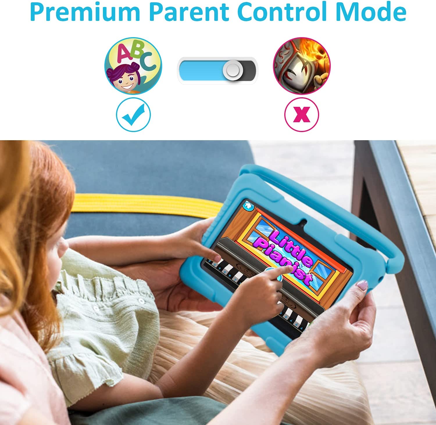 Kids Tablet, Veidoo 7 inch Android Tablet PC, 1GB RAM 16GB ROM, Safety Eye Protection Screen, WiFi, Bluetooth, Dual Camera, Educational, Games, Parental Control APP, Tablet with Silicone Case (Blue)