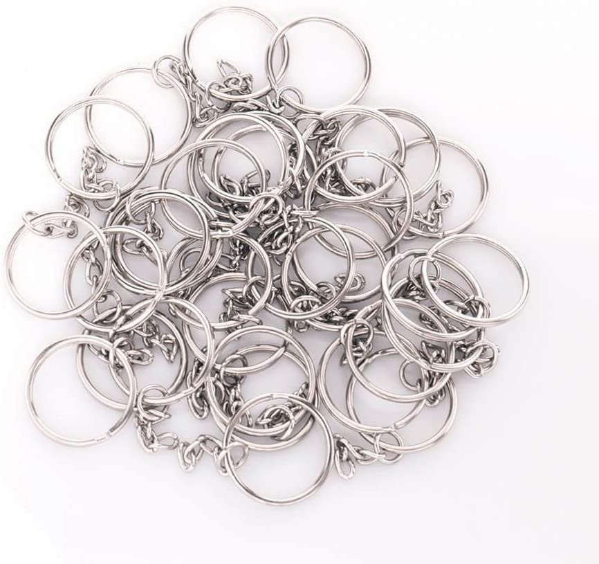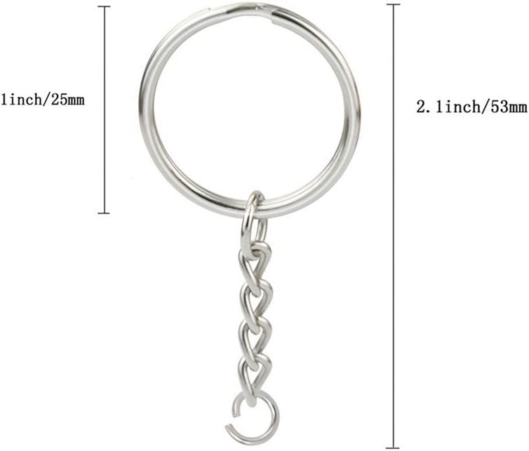KINGFOREST 100PCS Split Key Ring with Chain 1 inch and Jump Rings,Split Key Ring with Chain Silver Color Metal Split Key Chain Ring Parts with Open Jump Ring and Connector.