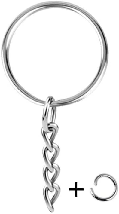 KINGFOREST 100PCS Split Key Ring with Chain 1 inch and Jump Rings,Split Key Ring with Chain Silver Color Metal Split Key Chain Ring Parts with Open Jump Ring and Connector.