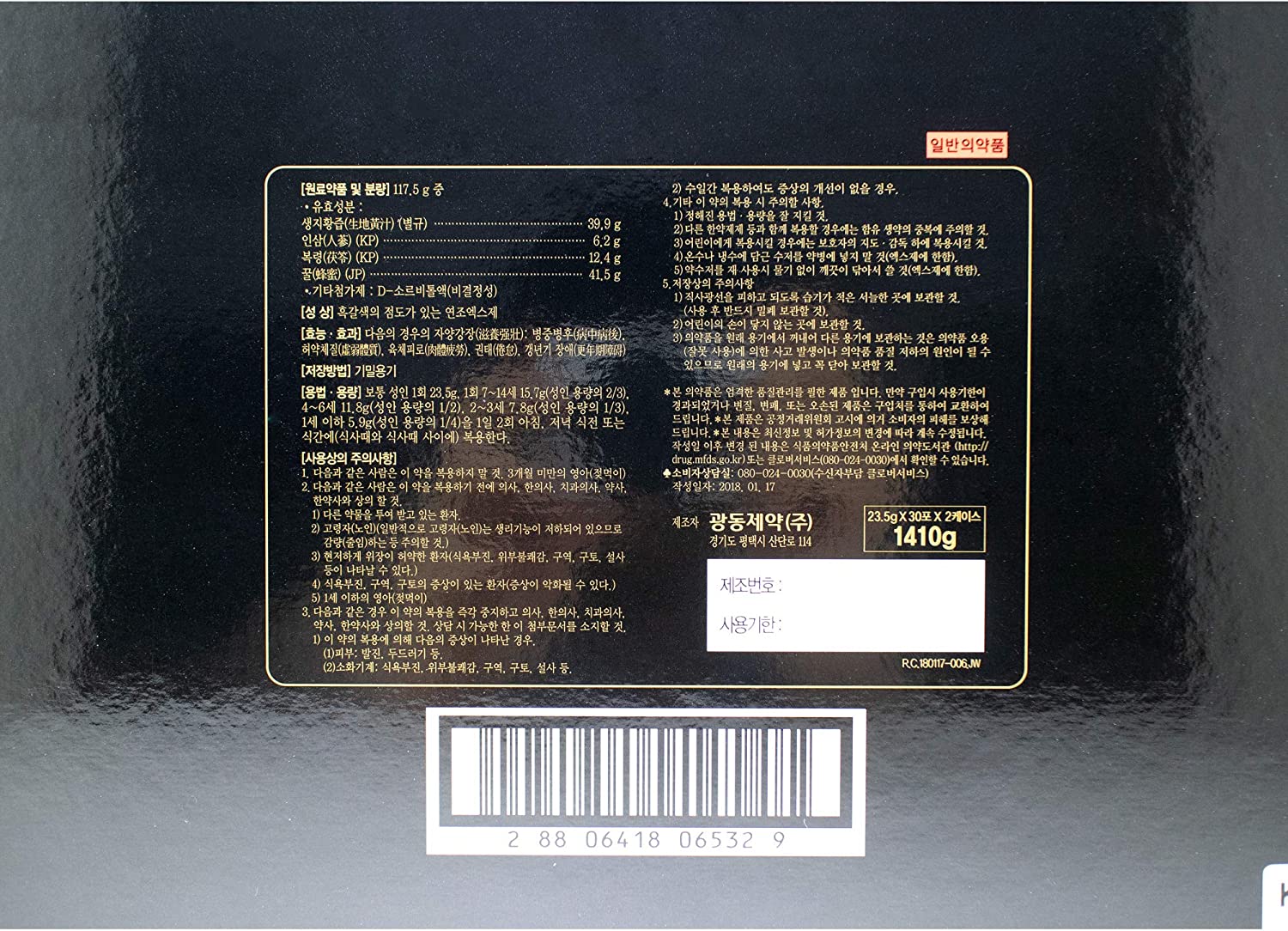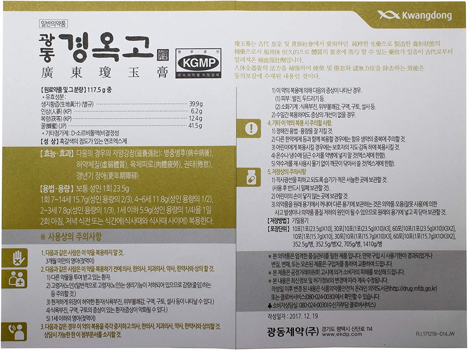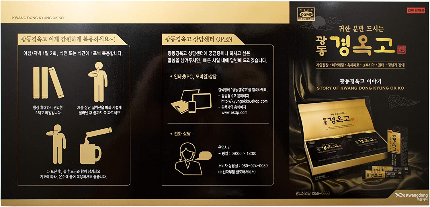 Kwang-Dong Kyung-Ok-Go Korean Nutritious Ginseng Tonic Individual Stick Pouches Gift Set (23.5g x 60 Stick Pouches) [광동제약 경옥고] + Korean Mulberry Paper HANJI Card for Gift Messages