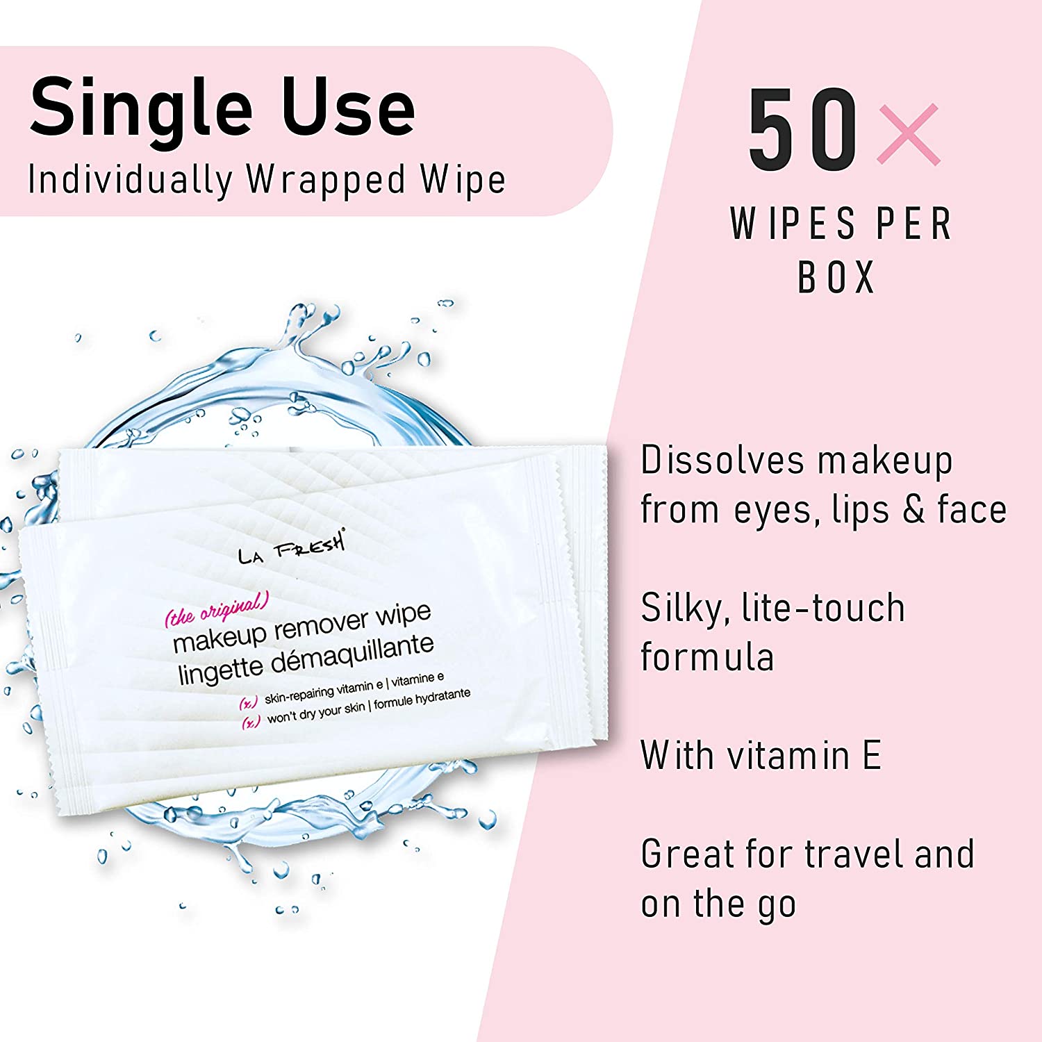 La Fresh Makeup Remover Cleansing Face Wipes Case of 50ct Facial Towelettes with Vitamin E for Waterproof Makeup