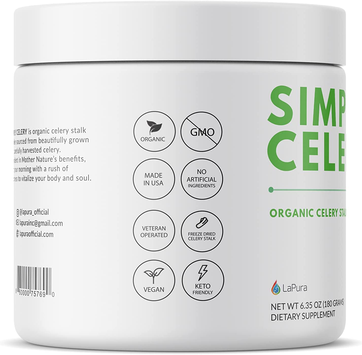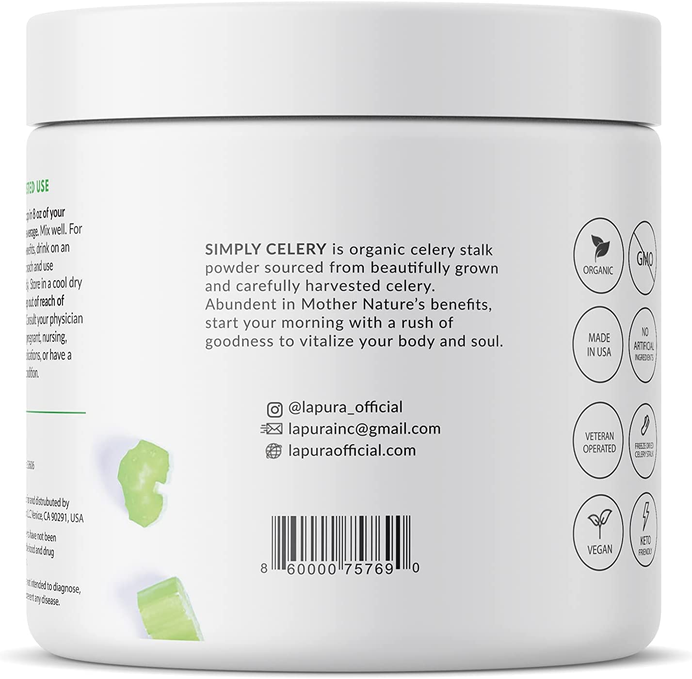 LaPura Organic Celery Powder Detox Cleanse - Fresh Celery Juice Powder to Support Gut Health & Naturally Detox - Cleanse & Detoxify, Antioxidant Just Celery Organic 30 Servings, 6.35 Ounce