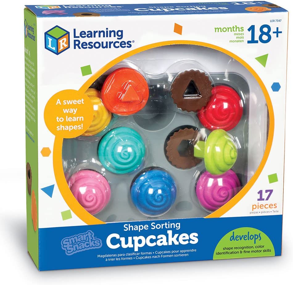 A delicious way to develop shape and color identification. Cupcakes pull apart to reveal shapes. Match the shapes to put them back together. Then match the shape to the pan bottom. Featured shapes align with grade K Common Core Math Standards—circle, square, triangle, rectangle, oval, hexagon, star, and heart. Includes pan and eight 2-part cupcakes measuring 2”H x 1 ½” in diameter. Toddlers Ages 2+.
