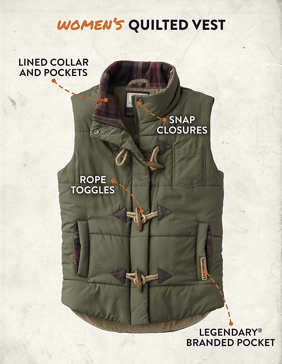 Legendary Whitetails womens Quilted Toggle Puffer Vest