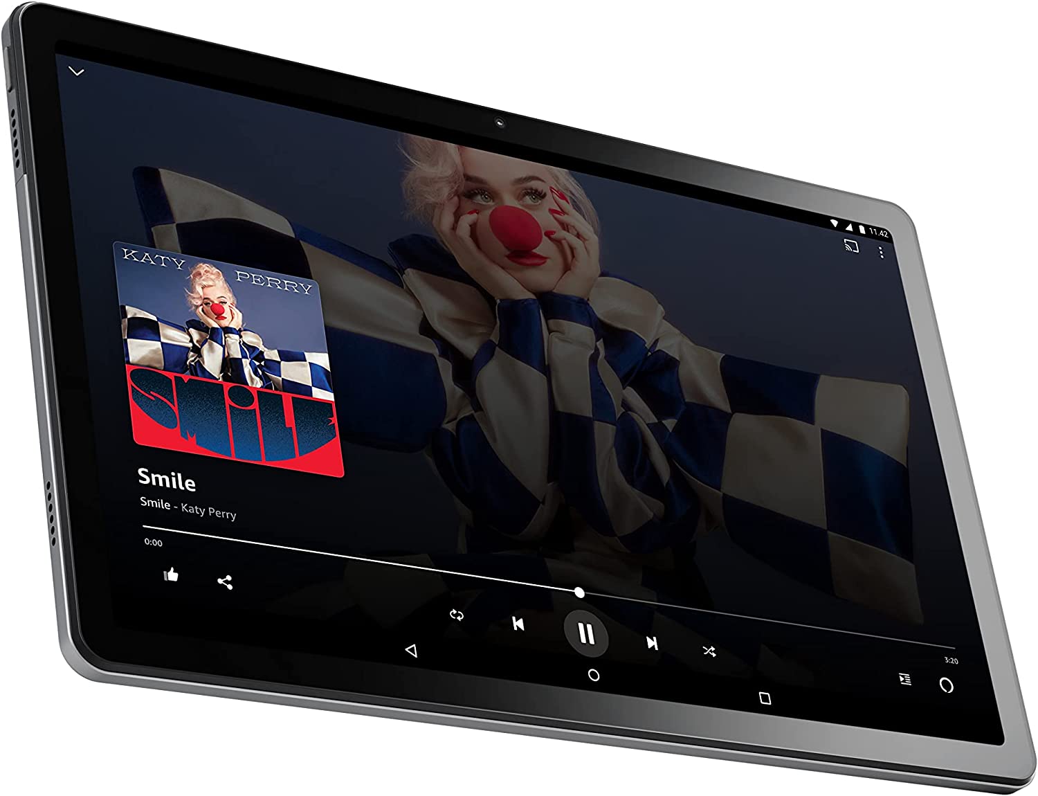 You can binge longer and study smarter with the Lenovo Tab M10 Plus 3rd Gen Android Tablet. Sleek, thin, and lightweight, this handy 10-inch tablet goes wherever you do, packing power and performance into a bold and contemporary aluminum chassis that's just 0.29" thin and as little as 1.03 lbs. Slip your Lenovo tablet into a shoulder bag, your school backpack, or carry it in folio case (available separately). The bright and colorful 10.6" display offers full HD clarity, so you can stream your favorite movies and shows for hours! Plus, with the special Reading Mode and TÜV Low Blue Light certification, you can enjoy long, comfortable hours of screen time on this Android tablet without straining your eyes. Music and audio sound great with the immersive quad speaker system optimized with Dolby Atmos®.