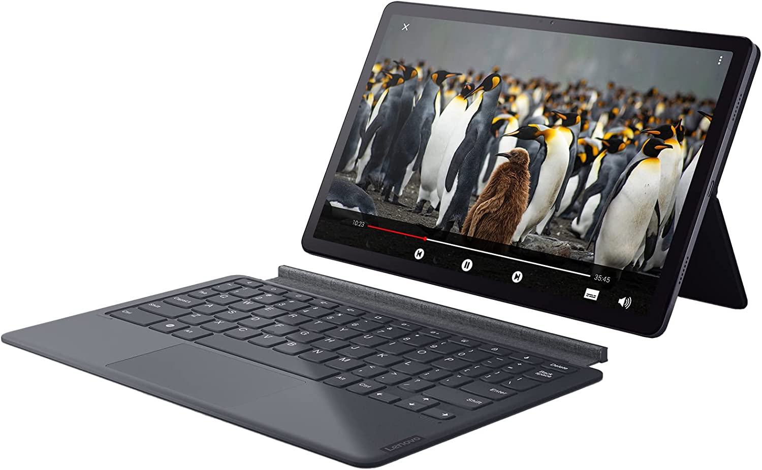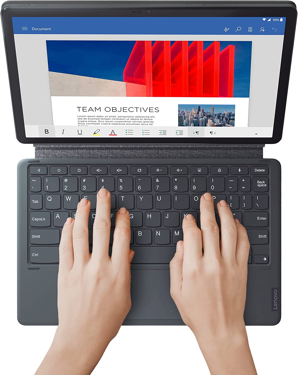 Running the Android™ 11 operating system, the Tab P11 Plus tablet offers Bluetooth® and Wi-Fi wireless connectivity and a USB Type-C™ 2.0 port for data transfer and charging. You can also use the USB-C port to attach a compatible headset. It comes with a detachable keyboard, making it easy to interact with the tablet by typing or using the touch screen. Use the front or rear camera to take photos or enjoy a family video chat – this Android tablet comes with a dual microphone array and quad speakers so you'll experience crisp, clear video and sound. You can even log in quickly and easily with Face Unlock.