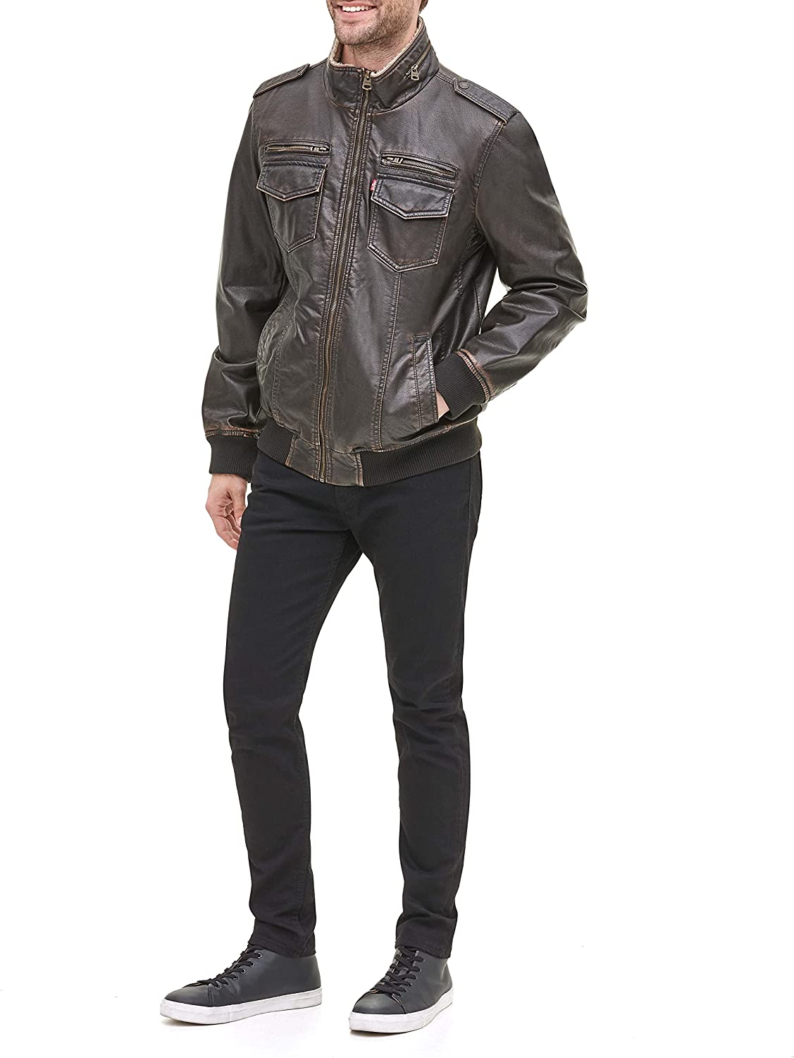 Levi's Men's Faux Leather Sherpa Aviator Bomber Jacket
