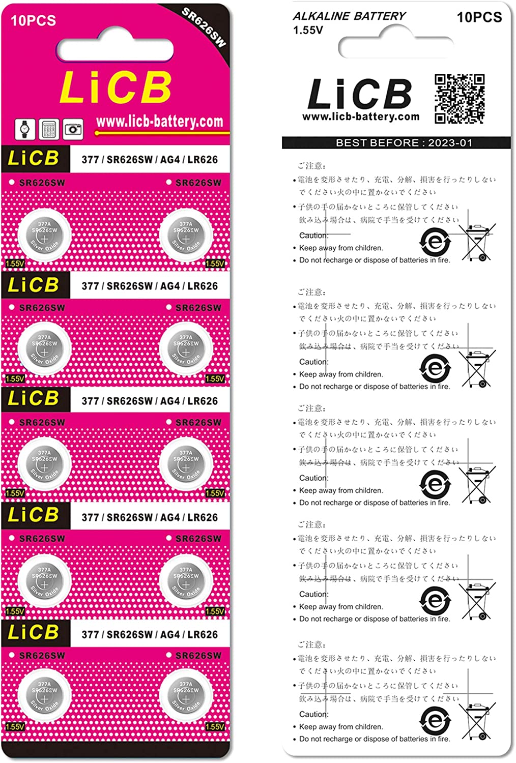 LiCB 20 Pack SR626SW 377 626 Watch Battery 1.5V Button Cell Batteries