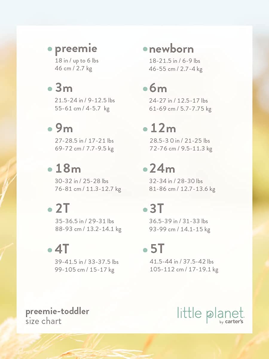 This super sweet Sleep N Play for baby has everything your little one needs. It features necessary details like long sleeves, a tab to protect their chin and even built-in footies! Also, how yummy is this veggie print! As always, this is Certified organic by the Global Organic Textile Standard (GOTS). Crafted in the purest organic fabrics and sustainable materials, Little Planet by Carter's is a return to simplicity. Thoughtful essentials and timeless pieces to gift or to hold on to.