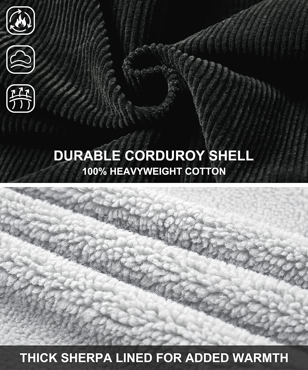 LOUECHY Men's Corduroy Sherpa Lined Trucker Jacket Thickened Warm Winter Coats