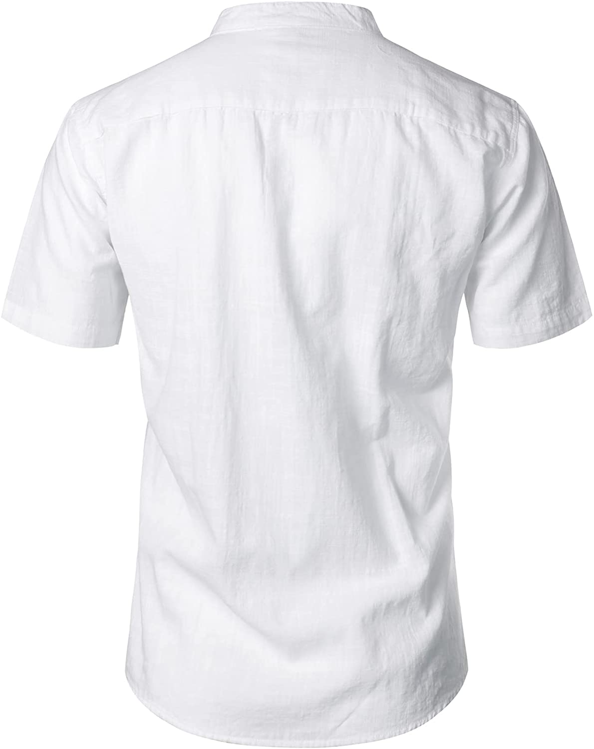 LucMatton Men's Casual Cotton Linen Short Sleeve Henley Shirt Summer Lightweight Banded Collar Beach Tops