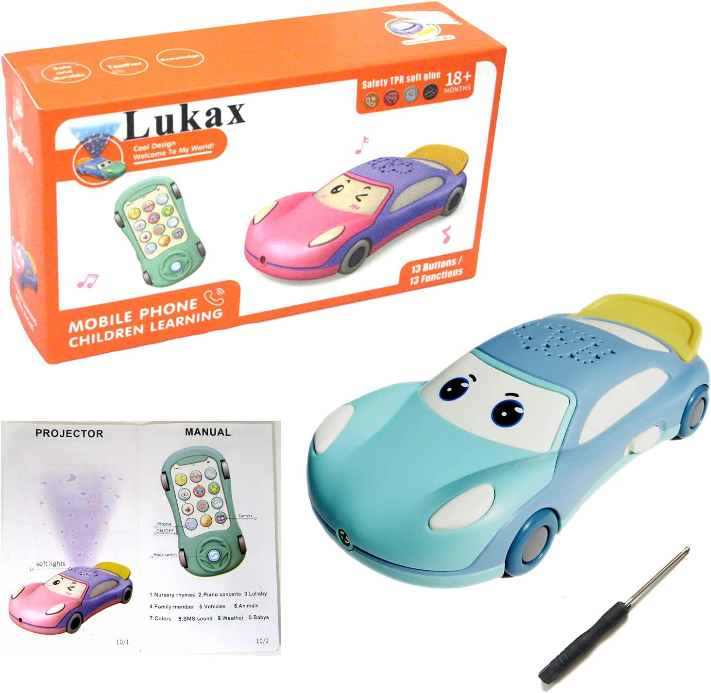 Lukax Baby Cell Phone Toy, Play Phone Toys with Music & Light, Baby Toys 18 Month Learning & Education, Musical Car Toys for Kid Toddlers Gifts 2+ Year Old Boys