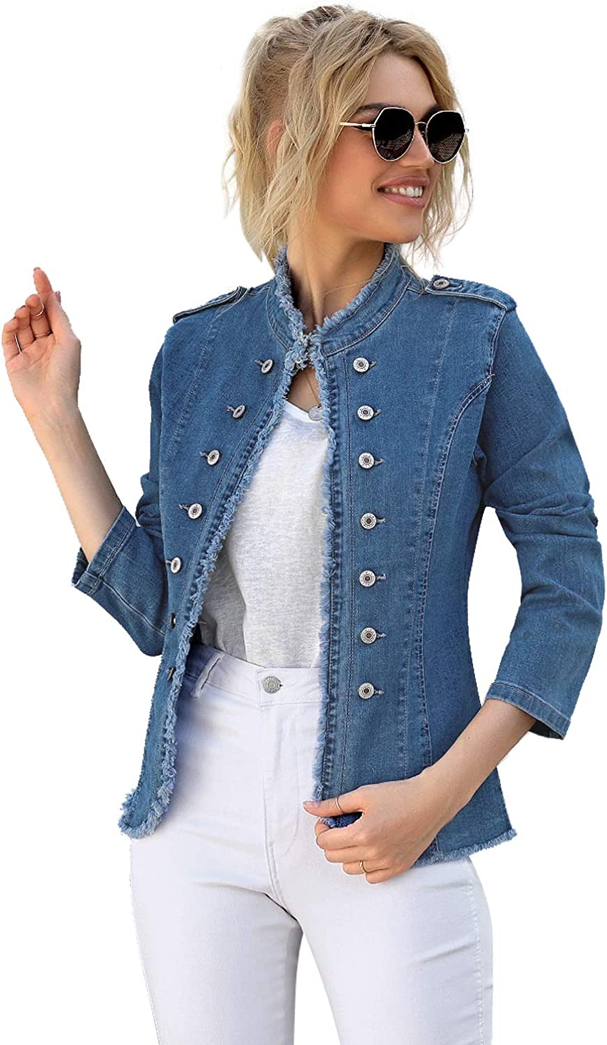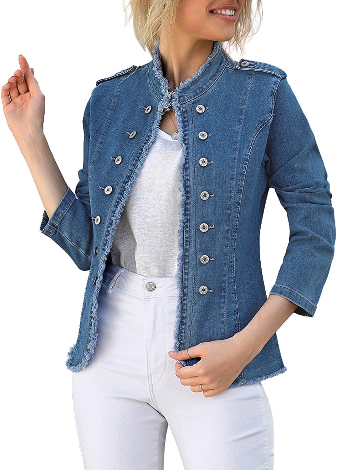 luvamia Women's Open Front Long Sleeves Work Blazer Casual Buttons Jacket Suit