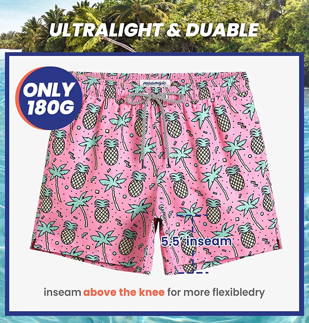 maamgic Mens Swim Trunks 5" with Mesh Lining Quick Dry Bathing Suits for Men Swim Shorts Swimwear
